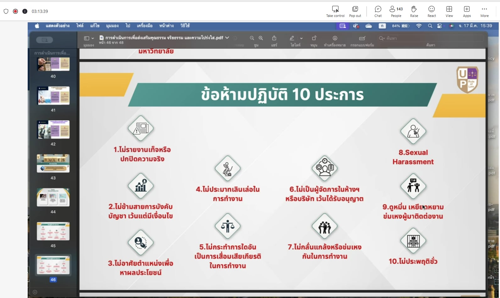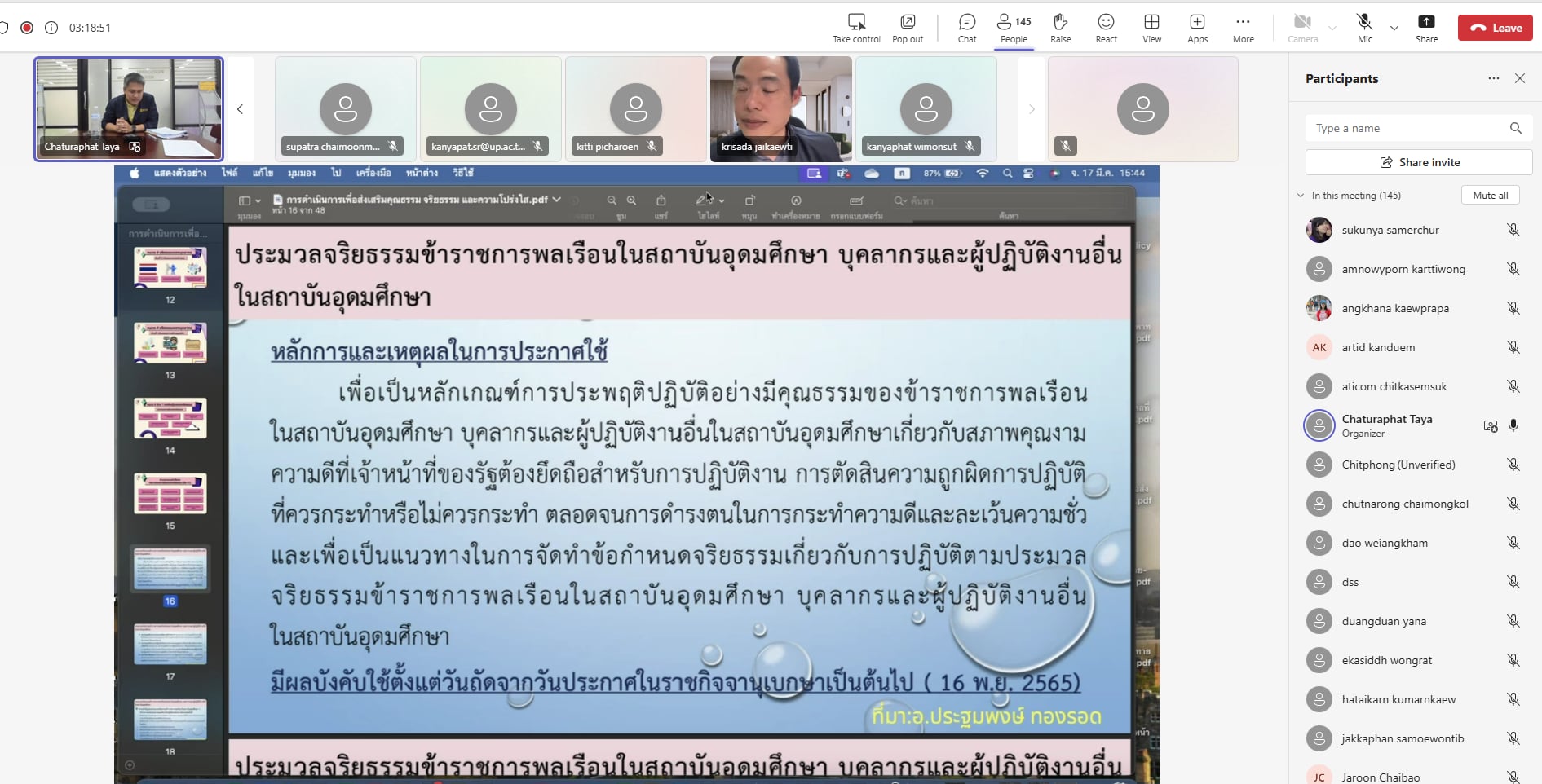 คณะศิลปศาสตร์เข้าร่วมการอบรมเสริมสร้างจริยธรรมให้กับบุคลากรมหาวิทยาลัยพะเยา