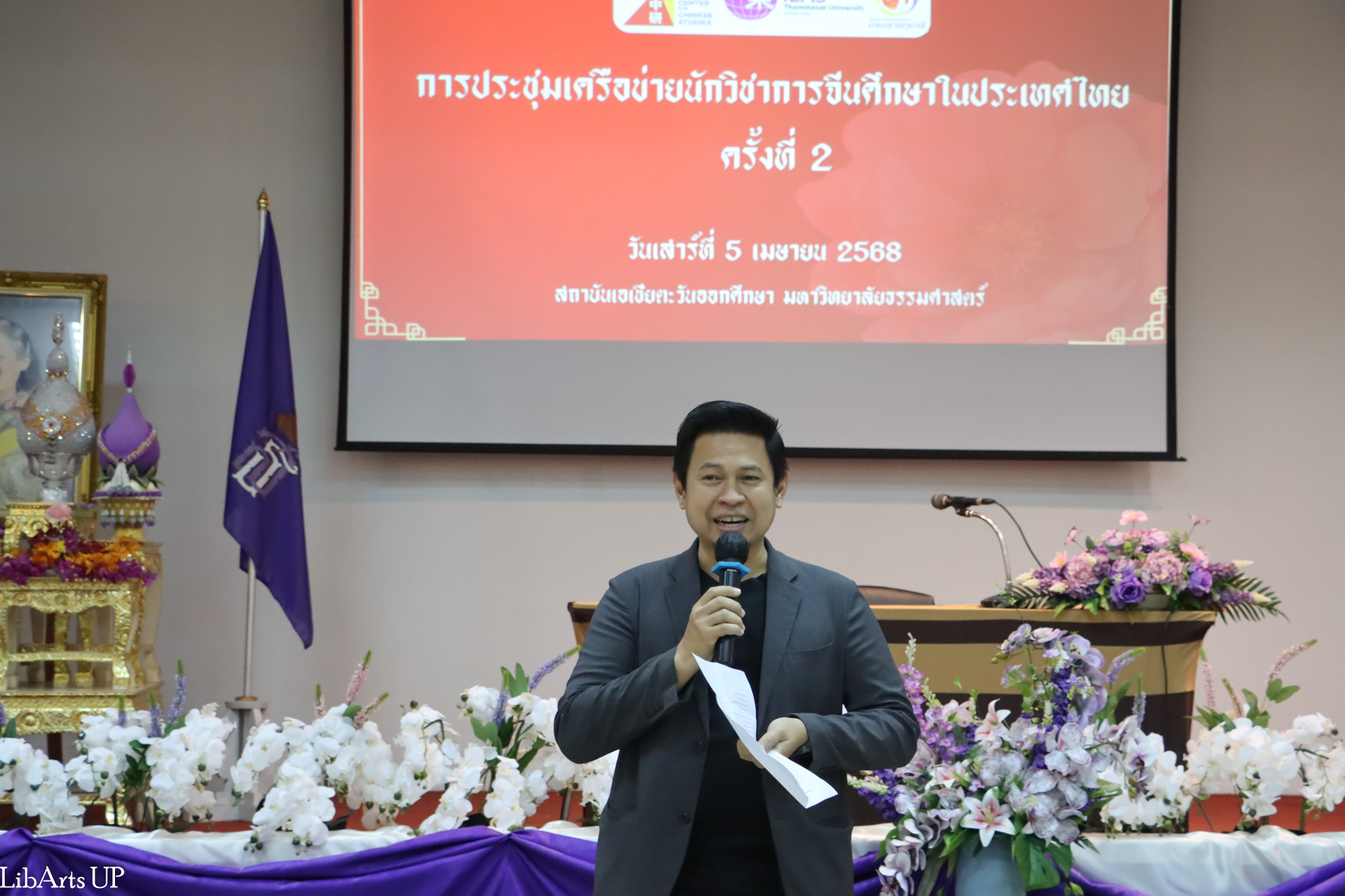 เมื่อวันเสาร์ที่ 5 เมษายน 2568 อาจารย์ณัฐวร วงศ์จิตราทร รองคณบดีฝ่ายคุณภาพนิสิต คณะศิลปศาสตร์ พร้อมด้วย ดร.สุนทรี ศรีวันทนียกุล ดร.จินตนา ศรีเงิน ดร.โสมวรรณ พัวเวส และ Miss Wang Hui ได้รับเกียรติเป็นตัวแทนคณาจารย์สาขาวิชาภาษาจีน คณะศิลปศาสตร์ มหาวิทยาลัยพะเยา เข้าร่วมการประชุมเครือข่ายนักวิชาการจีนศึกษาในประเทศไทย ณ ห้องสัมมนากลาง สถาบันเอเชียตะวันออกศึกษา มหาวิทยาลัยธรรมศาสตร์ ศูนย์รังสิต ซึ่งจัดโดยศูนย์จีนศึกษาและศูนย์การเรียนรู้จีนศึกษาบรมราชกุมารี สถาบันเอเชียตะวันออกศึกษา มหาวิทยาลัยธรรมศาสตร์