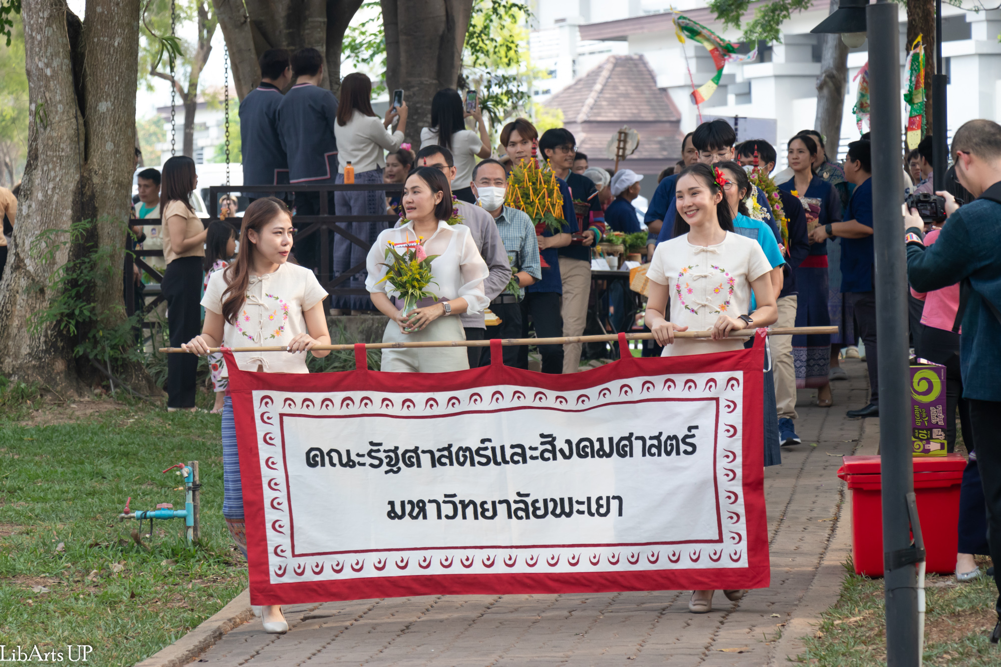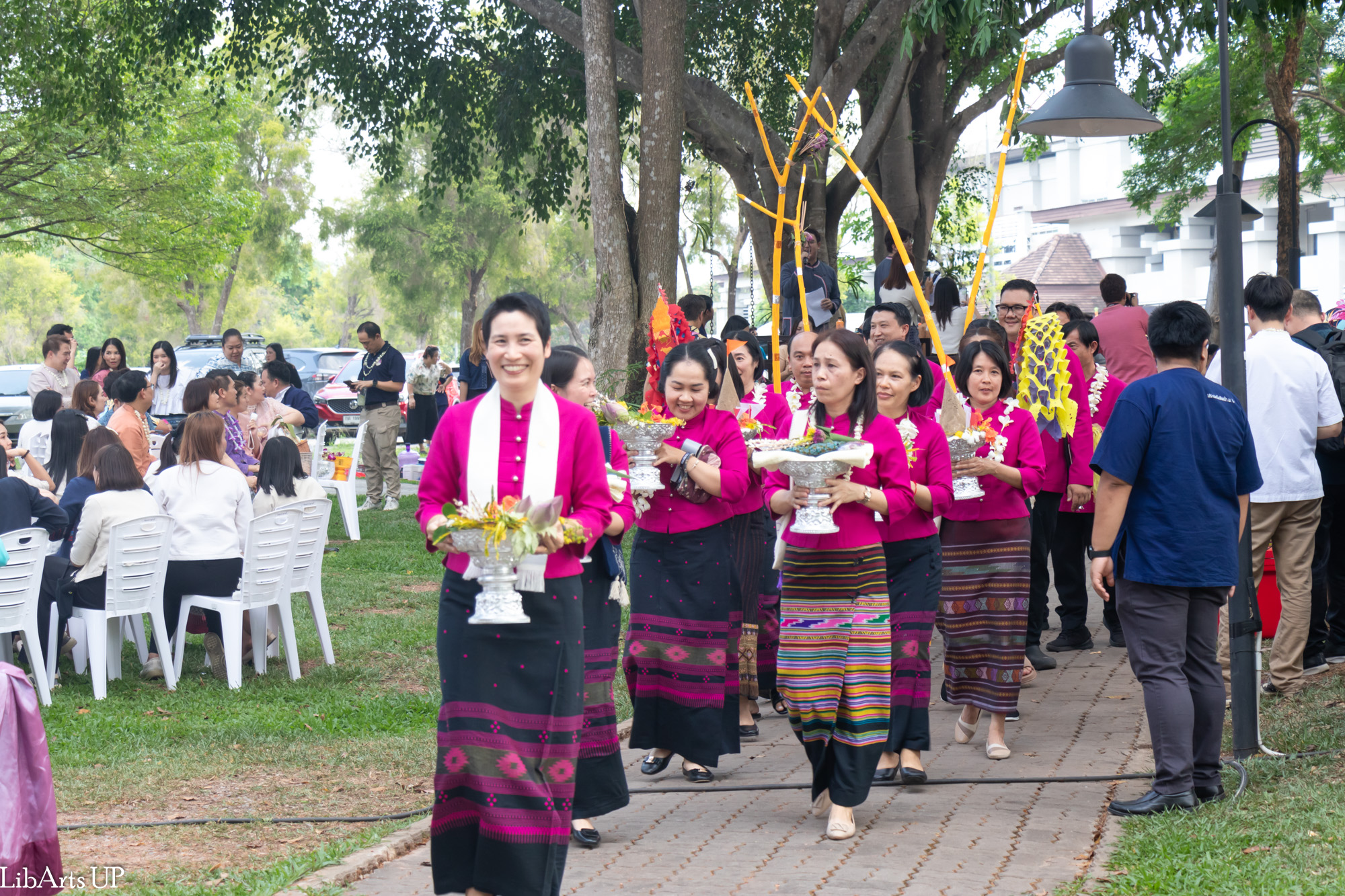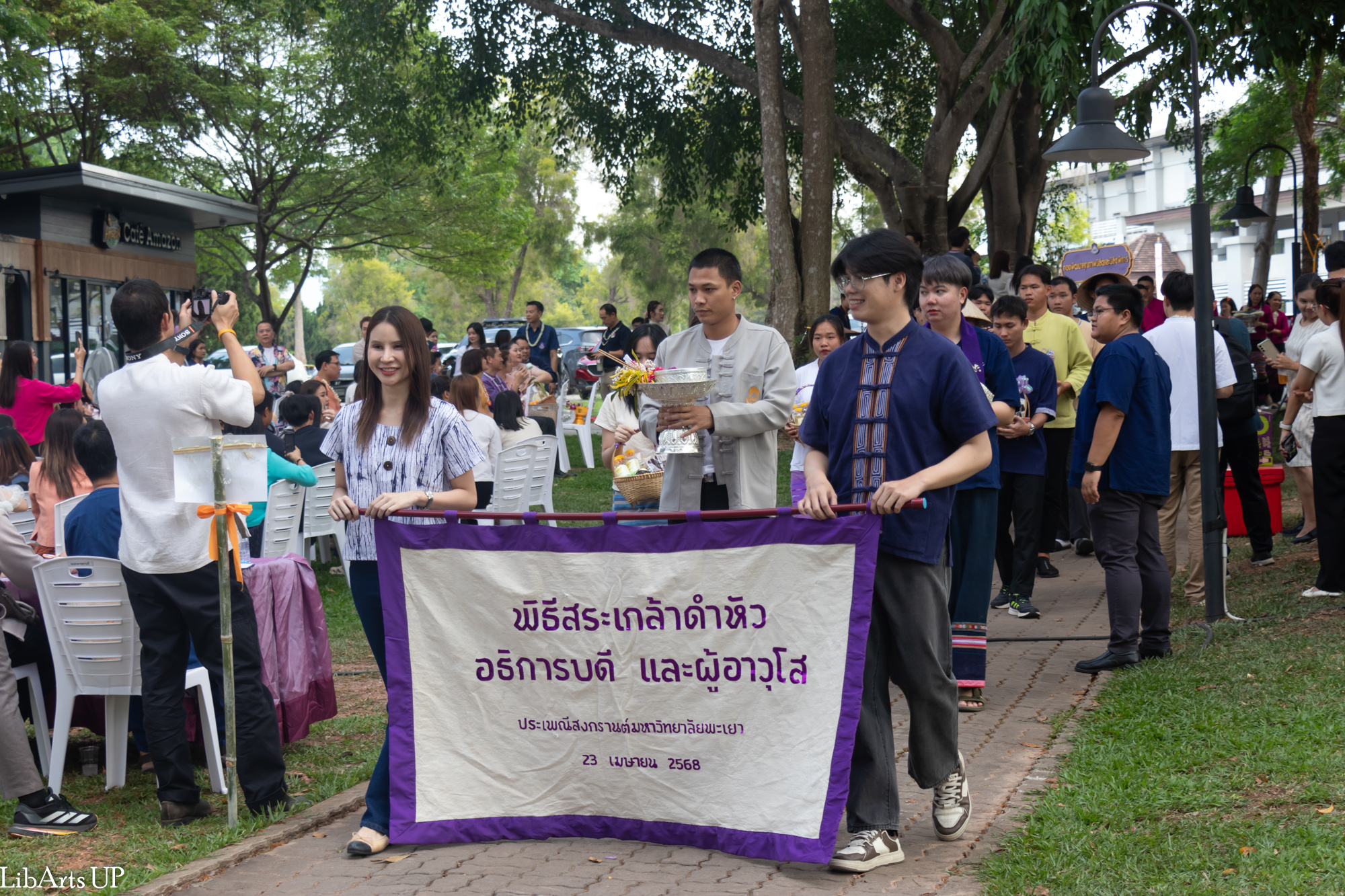 เมื่อวันพุธที่ ๒๓ เมษายน ๒๕๖๘ คณะศิลปศาสตร์ นำโดย ผู้ช่วยศาสตราจารย์ ดร.จิตติมา กาวีระ คณบดี พร้อมด้วยคณะผู้บริหารและบุคลากรสายสนับสนุน ได้เข้าร่วมพิธีสระเกล้าดำหัวอธิการบดี และผู้อาวุโส เนื่องในประเพณีสงกรานต์มหาวิทยาลัยพะเยา ประจำปี ๒๕๖๘ ณ ลานเอนกประสงค์หลังอาคารสำนักงานอธิการบดี โดยได้รับกียรติจาก รองศาสตราจารย์ ดร.สุภกร พงศบางโพธิ์ อธิการบดี มหาวิทยาลัยพะเยา เป็นประธาน ทั้งนี้ คณะผู้บริหารและบุคลากรคณะศิลปศาสตร์ ได้ร่วมกิจกรรม อาทิ การสรงน้ำพระพุทธภุชคารักษ์และพระบรมรูปสมเด็จพระนเรศวรมหาราช จากนั้นร่วมพิธีสระเกล้าดำหัวอธิการบดีและผู้อาวุโส พร้อมมอบพวงมาลัยเพื่อขอขมาและขอพรเนื่องในวันปีใหม่เมือง รวมถึงร่วมแจกขนมให้แก่บุคลากรมหาวิทยาลัยพะเยาที่เข้าร่วมกิจกรรมด้วย