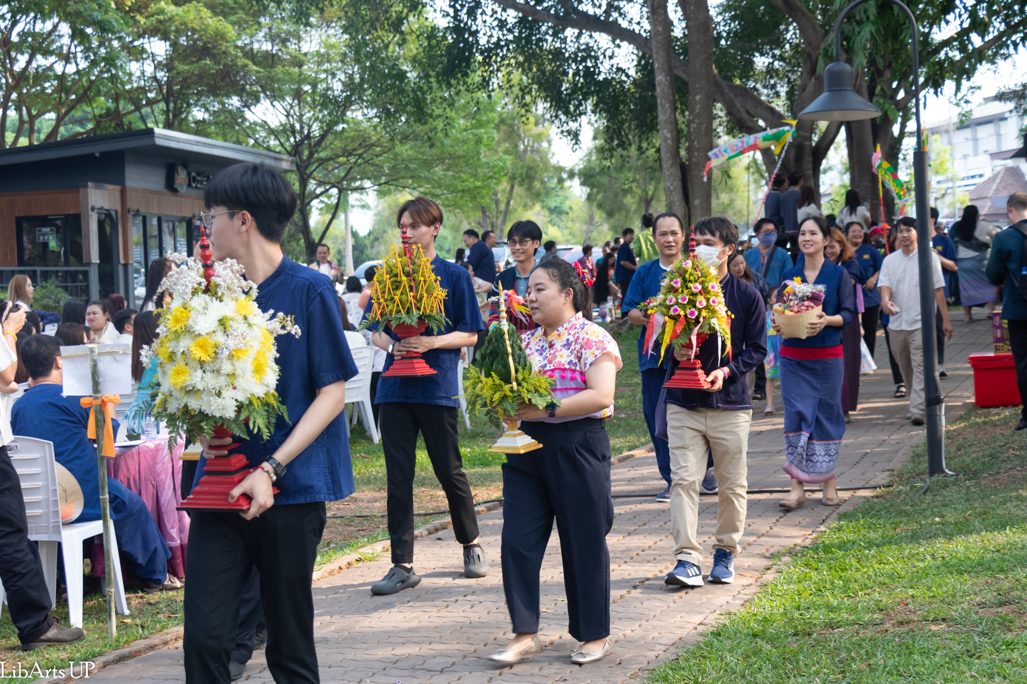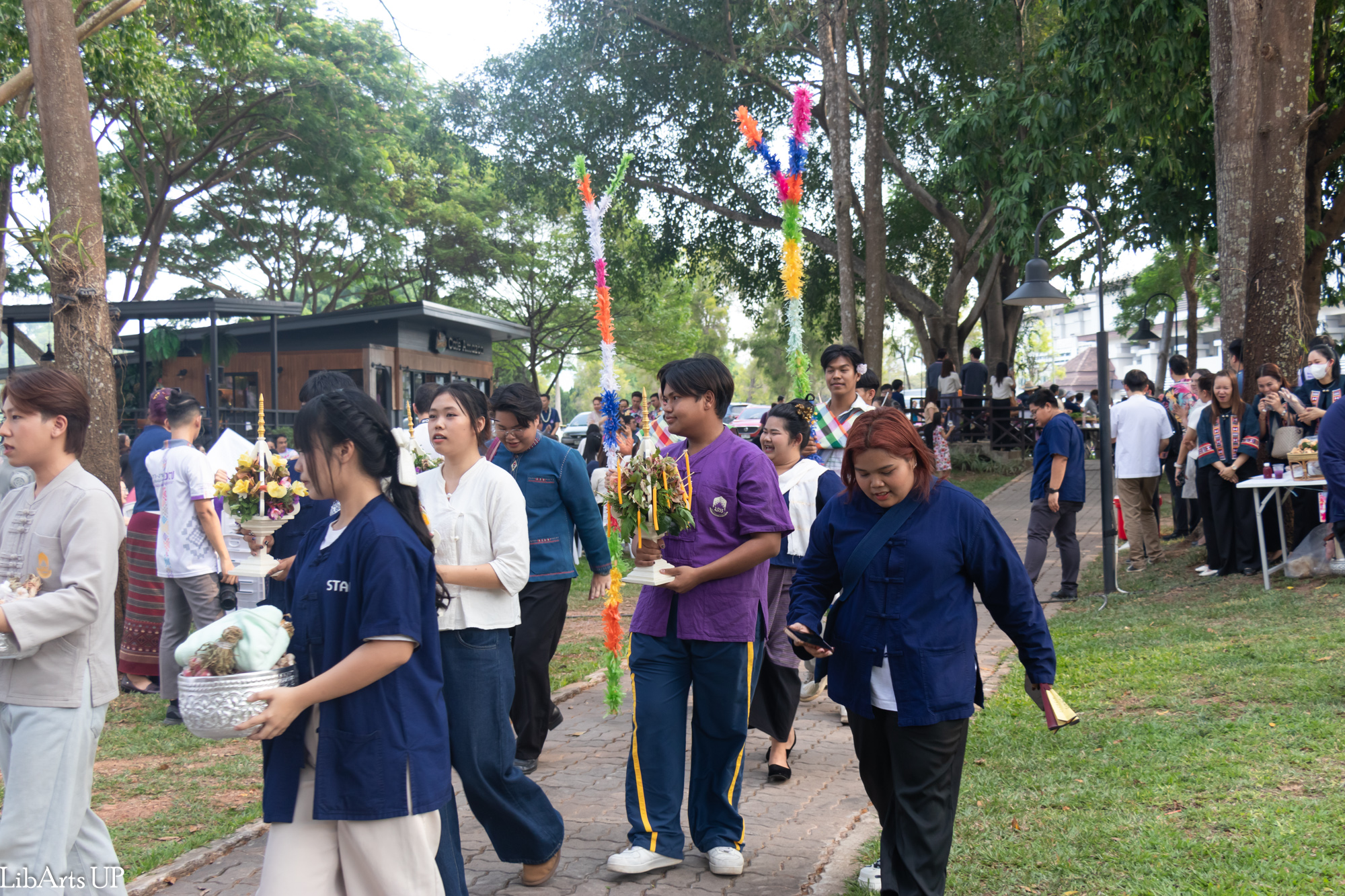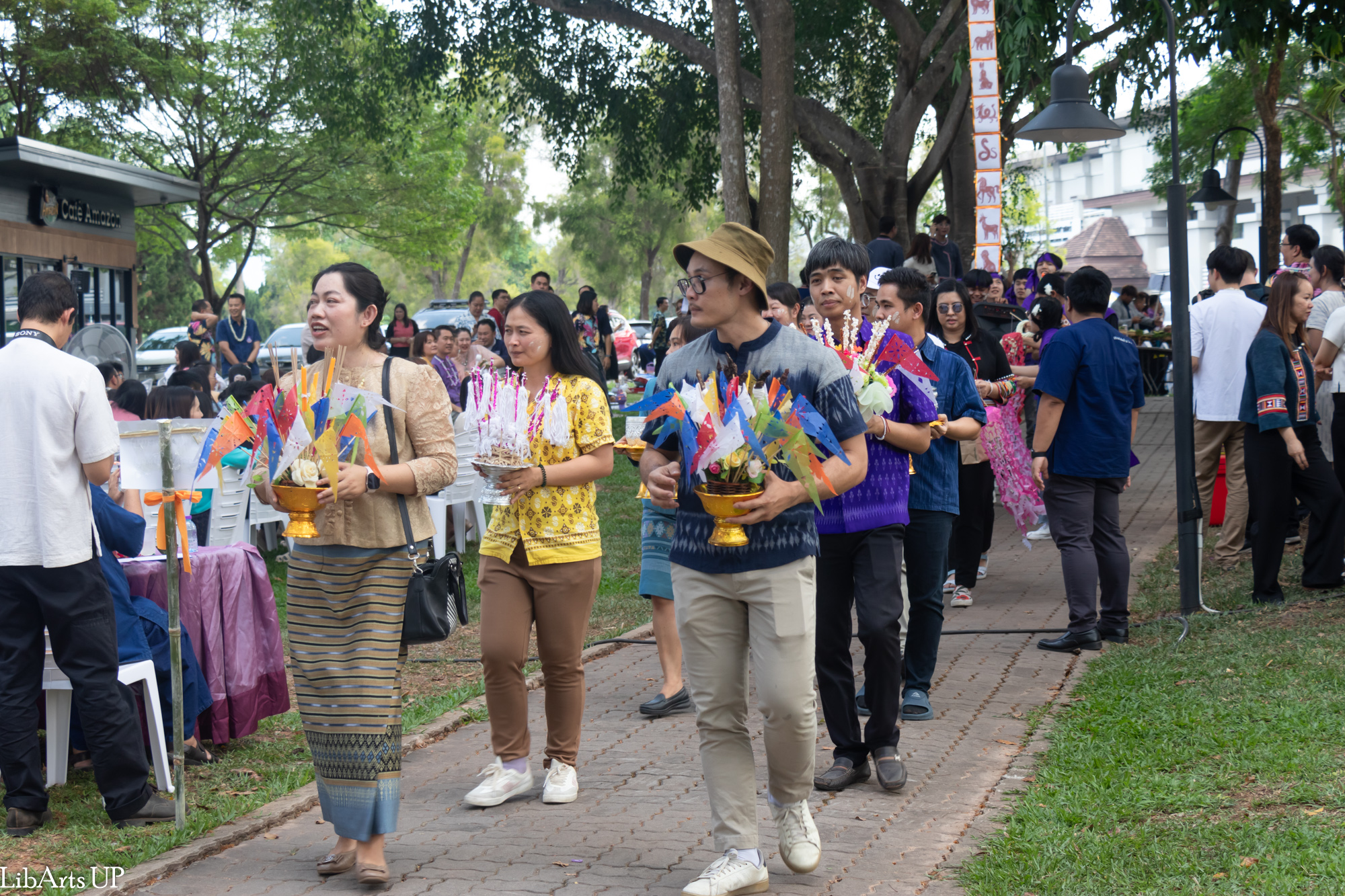 เมื่อวันพุธที่ ๒๓ เมษายน ๒๕๖๘ คณะศิลปศาสตร์ นำโดย ผู้ช่วยศาสตราจารย์ ดร.จิตติมา กาวีระ คณบดี พร้อมด้วยคณะผู้บริหารและบุคลากรสายสนับสนุน ได้เข้าร่วมพิธีสระเกล้าดำหัวอธิการบดี และผู้อาวุโส เนื่องในประเพณีสงกรานต์มหาวิทยาลัยพะเยา ประจำปี ๒๕๖๘ ณ ลานเอนกประสงค์หลังอาคารสำนักงานอธิการบดี โดยได้รับกียรติจาก รองศาสตราจารย์ ดร.สุภกร พงศบางโพธิ์ อธิการบดี มหาวิทยาลัยพะเยา เป็นประธาน ทั้งนี้ คณะผู้บริหารและบุคลากรคณะศิลปศาสตร์ ได้ร่วมกิจกรรม อาทิ การสรงน้ำพระพุทธภุชคารักษ์และพระบรมรูปสมเด็จพระนเรศวรมหาราช จากนั้นร่วมพิธีสระเกล้าดำหัวอธิการบดีและผู้อาวุโส พร้อมมอบพวงมาลัยเพื่อขอขมาและขอพรเนื่องในวันปีใหม่เมือง รวมถึงร่วมแจกขนมให้แก่บุคลากรมหาวิทยาลัยพะเยาที่เข้าร่วมกิจกรรมด้วย