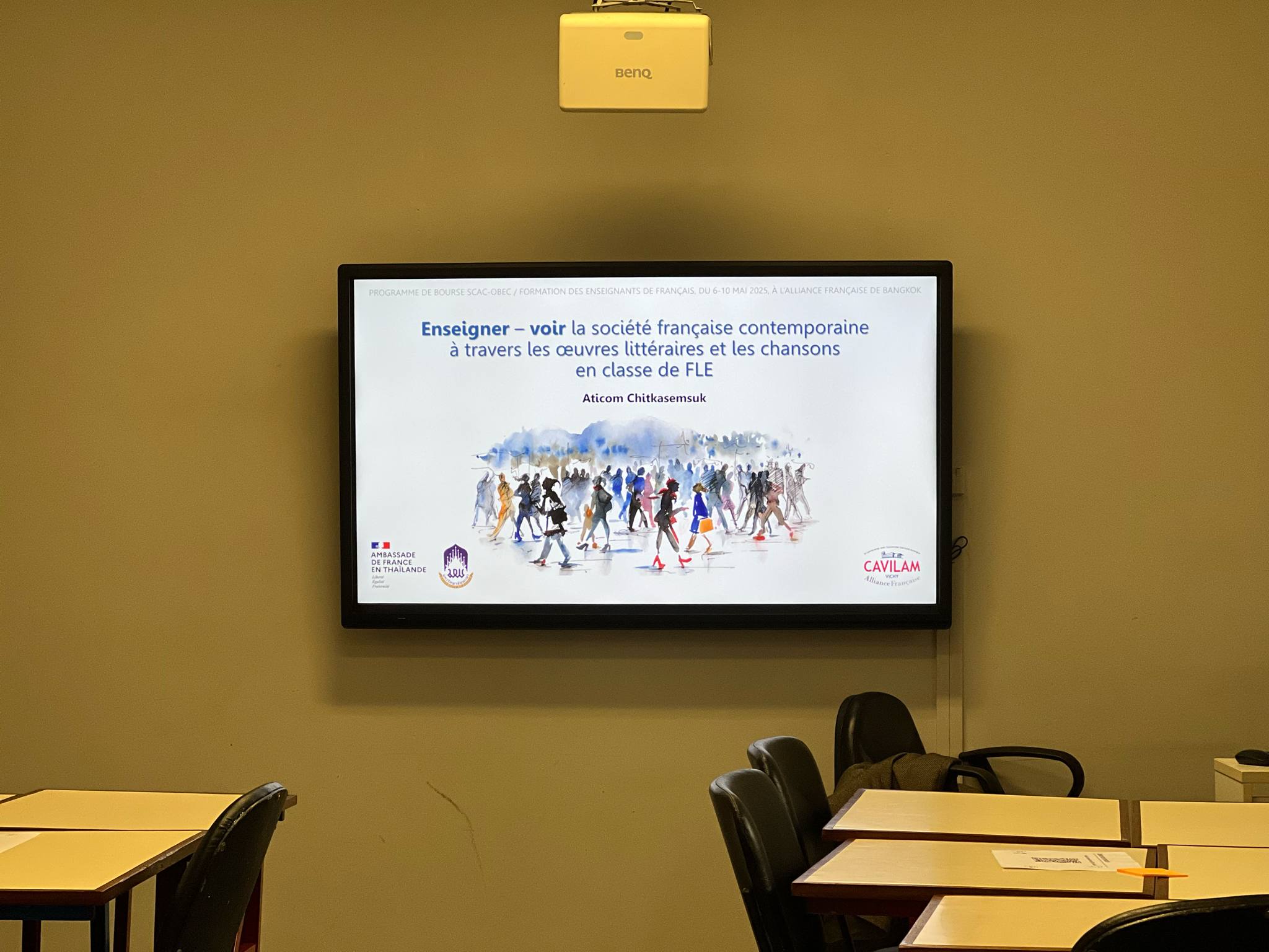 อาจารย์อธิคมน์ จิตรเกษมสุข อาจารย์ประจำสาขาวิชาภาษาฝรั่งเศส คณะศิลปศาสตร์ มหาวิทยาลัยพะเยา ได้รับเชิญให้เป็นวิทยากรในโครงการ ฝึกอบรมครูสอนภาษาฝรั่งเศสเพื่อพัฒนาความรู้สู่มาตรฐานยุโรป (SCAC-OBEC 2024) ซึ่งจัดขึ้นโดยฝ่ายวัฒนธรรมและความร่วมมือ สถานเอกอัครราชทูตฝรั่งเศส ประจำประเทศไทย ระหว่างวันที่ 6-10 พฤษภาคม 2568 ณ สมาคมฝรั่งเศสกรุงเทพ โดยได้บรรยายในหัวข้อ Enseigner-Voir la société française contemporaine à travers les oeuvres littéraires et les chansons en classe de FLE (การสอน – มองสังคมฝรั่งเศสร่วมสมัยผ่านงานวรรณกรรมและบทเพลงในชั้นเรียนภาษาฝรั่งเศสเป็นภาษาต่างประเทศ)