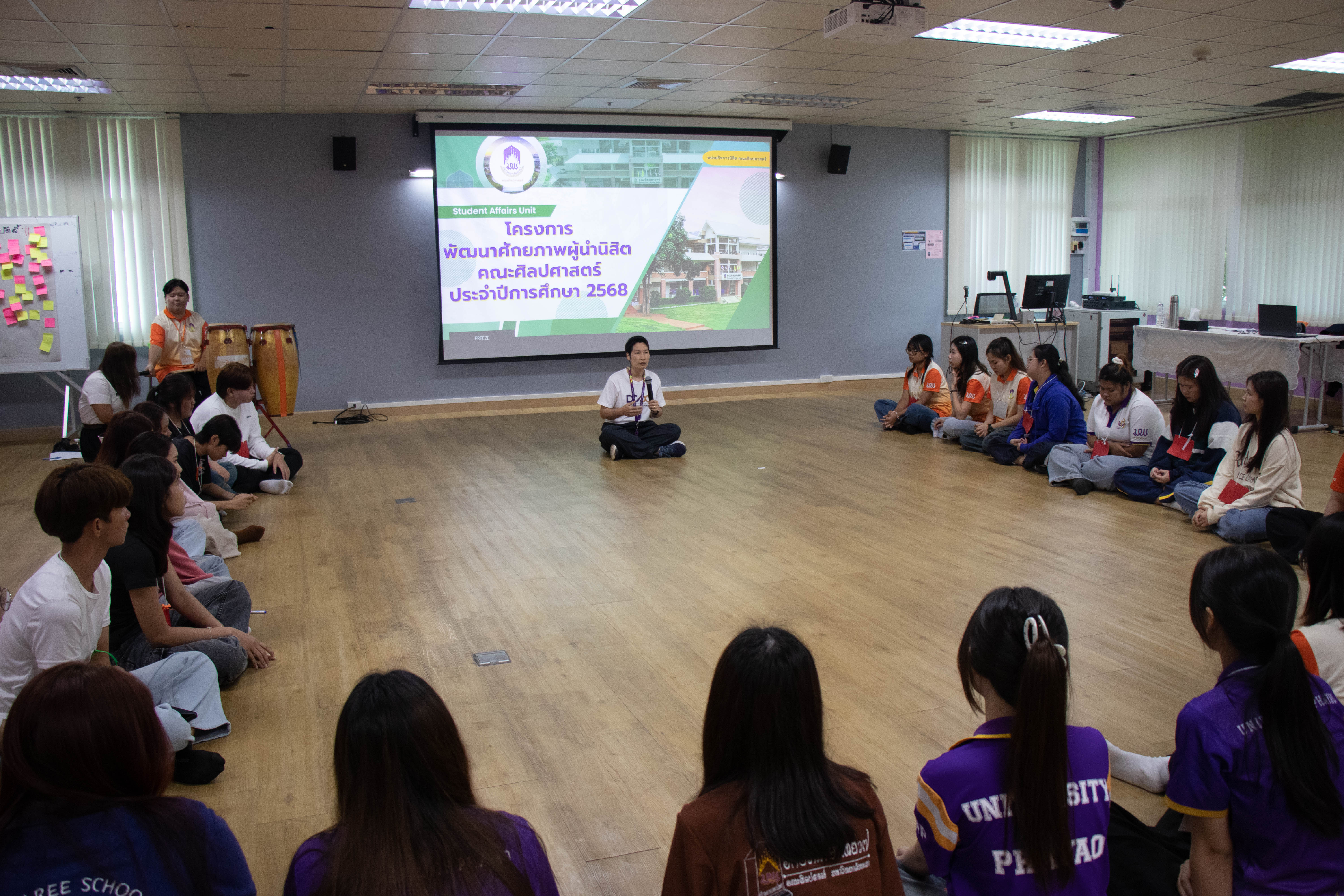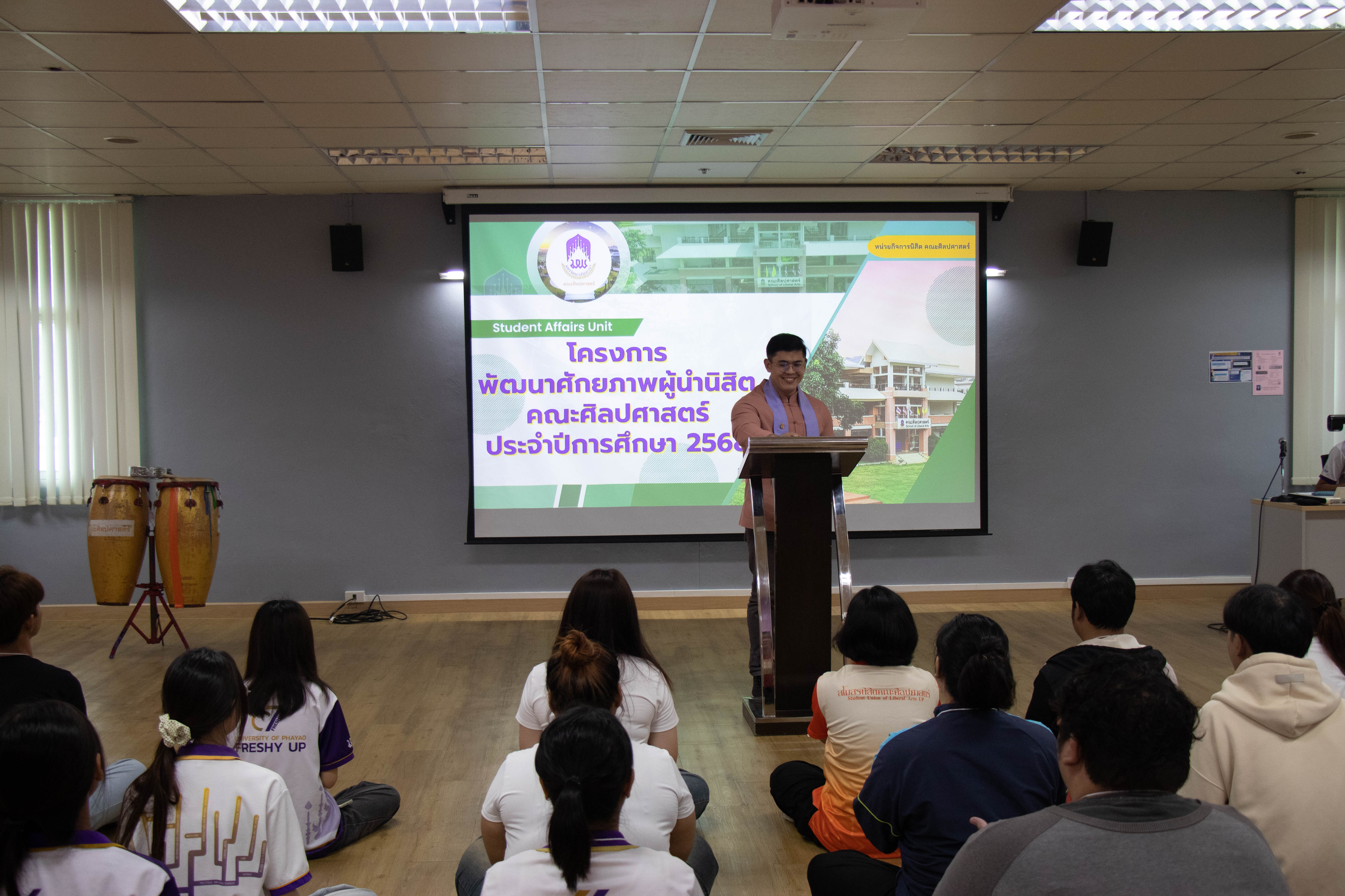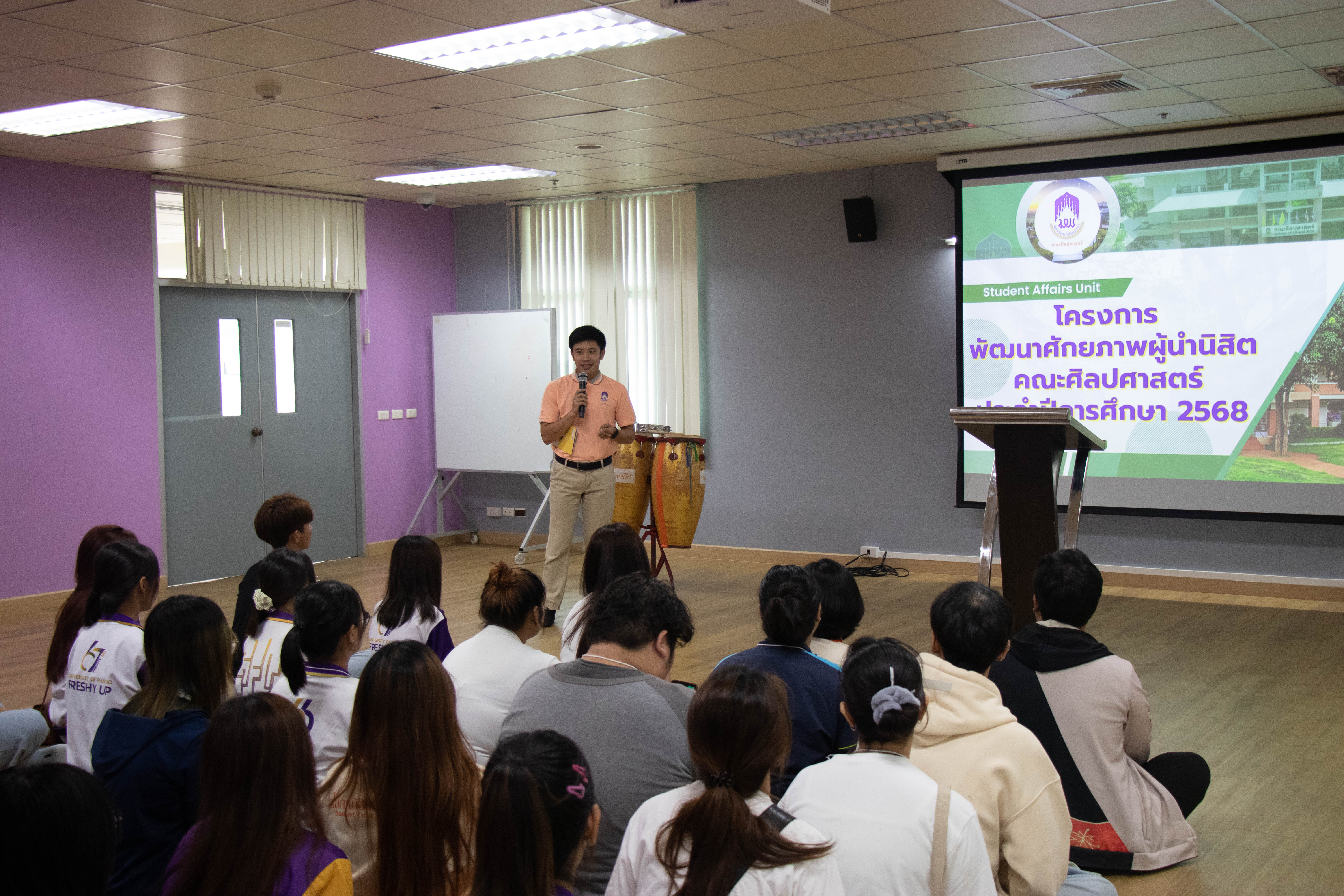 หน่วยกิจการนิสิต คณะศิลปศาสตร์ ได้จัด โครงการพัฒนาศักยภาพผู้นำนิสิตคณะศิลปศาสตร์ ระหว่างวันที่ 15-16 พฤษภาคม พ.ศ. 2568 ณ ห้อง CE 07214 อาคารเรียนรวม มหาวิทยาลัยพะเยา โดยมีวัตถุประสงค์เพื่อสร้างความเข้าใจในบทบาทหน้าที่ผู้นำนิสิต เพื่อส่งเสริมและพัฒนาทักษะความเป็นผู้นำที่มีคุณภาพ มีวิสัยทัศน์และมีศักยภาพ สามารถนำพาองค์กรไปสู่ความสำเร็จ