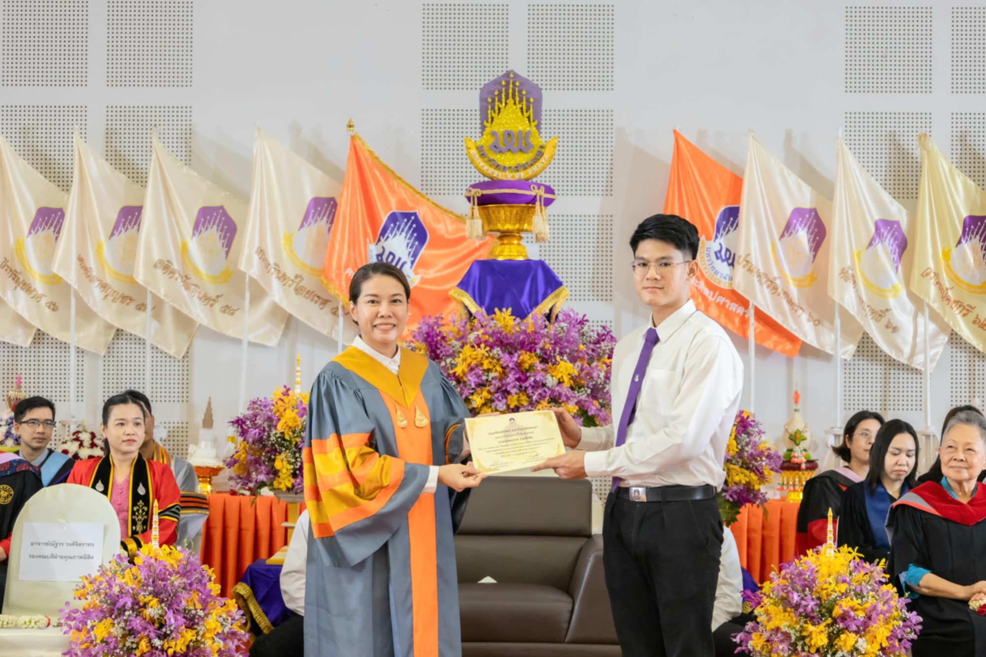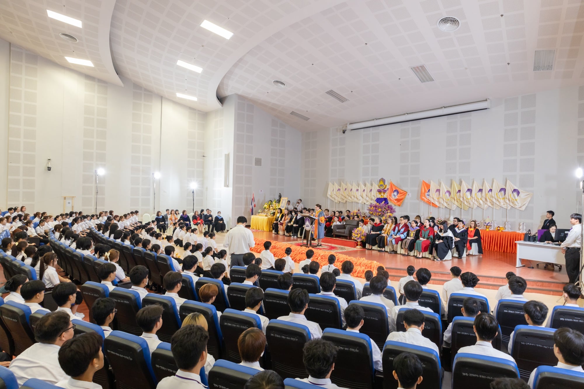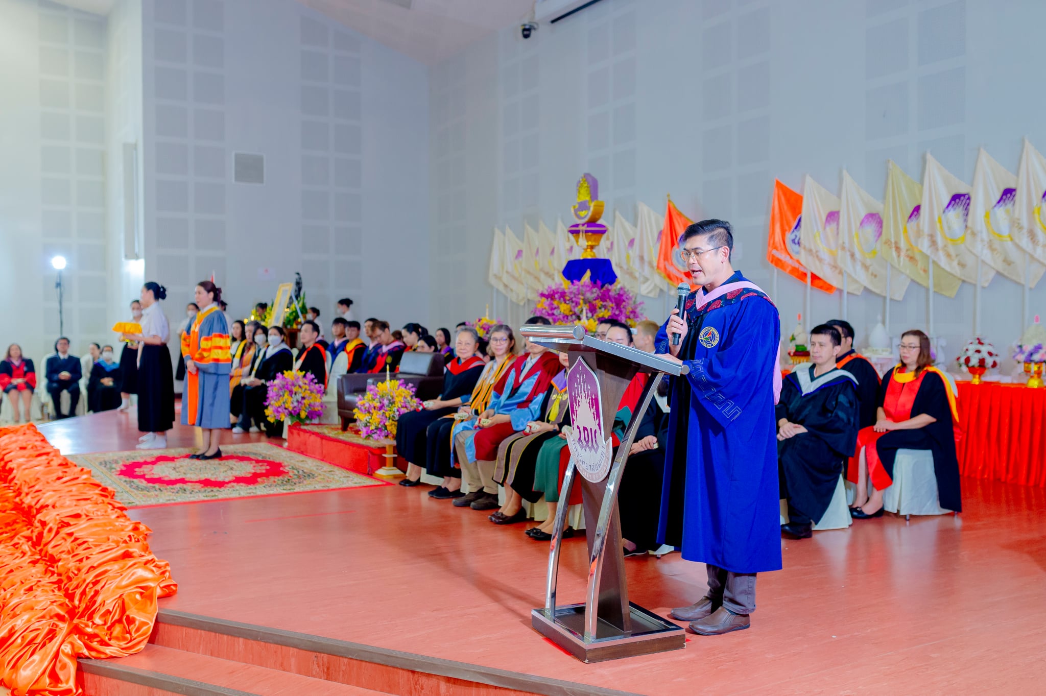 ประธานในพิธีกล่าวให้โอวาทแก่นิสิต โดยเน้น “ความสำคัญของการบริหารเวลาและการสร้างโอกาสการเรียนรู้ให้กับตนเองเพื่อก่อให้เกิดการพัฒนาตนเองตามเป้าหมายที่ตั้งไว้” และรองคณบดีฝ่ายคุณภาพนิสิต อาจารย์ณัฐวร วงศ์จิตราทร ได้ประกาศรับนิสิต รุ่น “ศักติชัยไอยเรศ” ของนิสิตประจำปีการศึกษา ๒๕๖๘