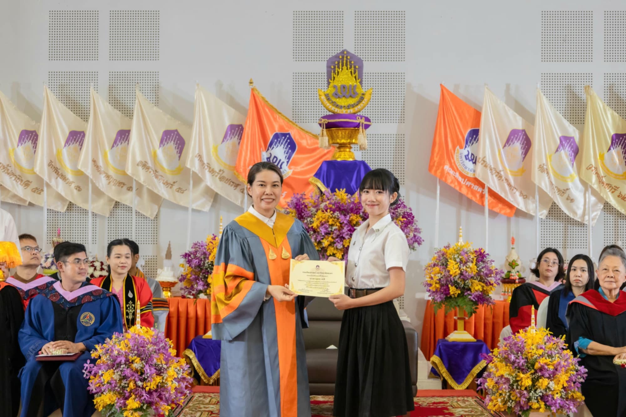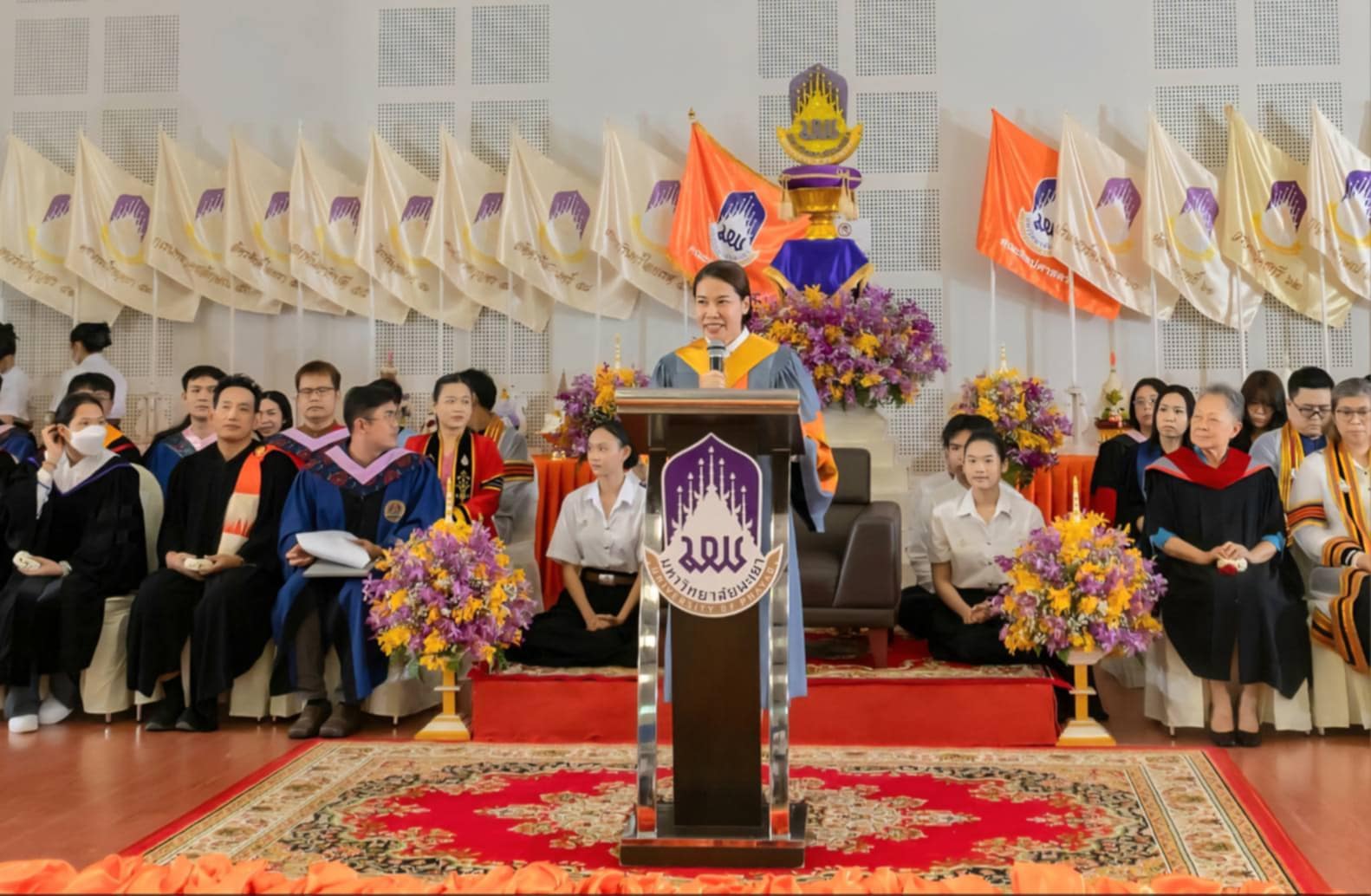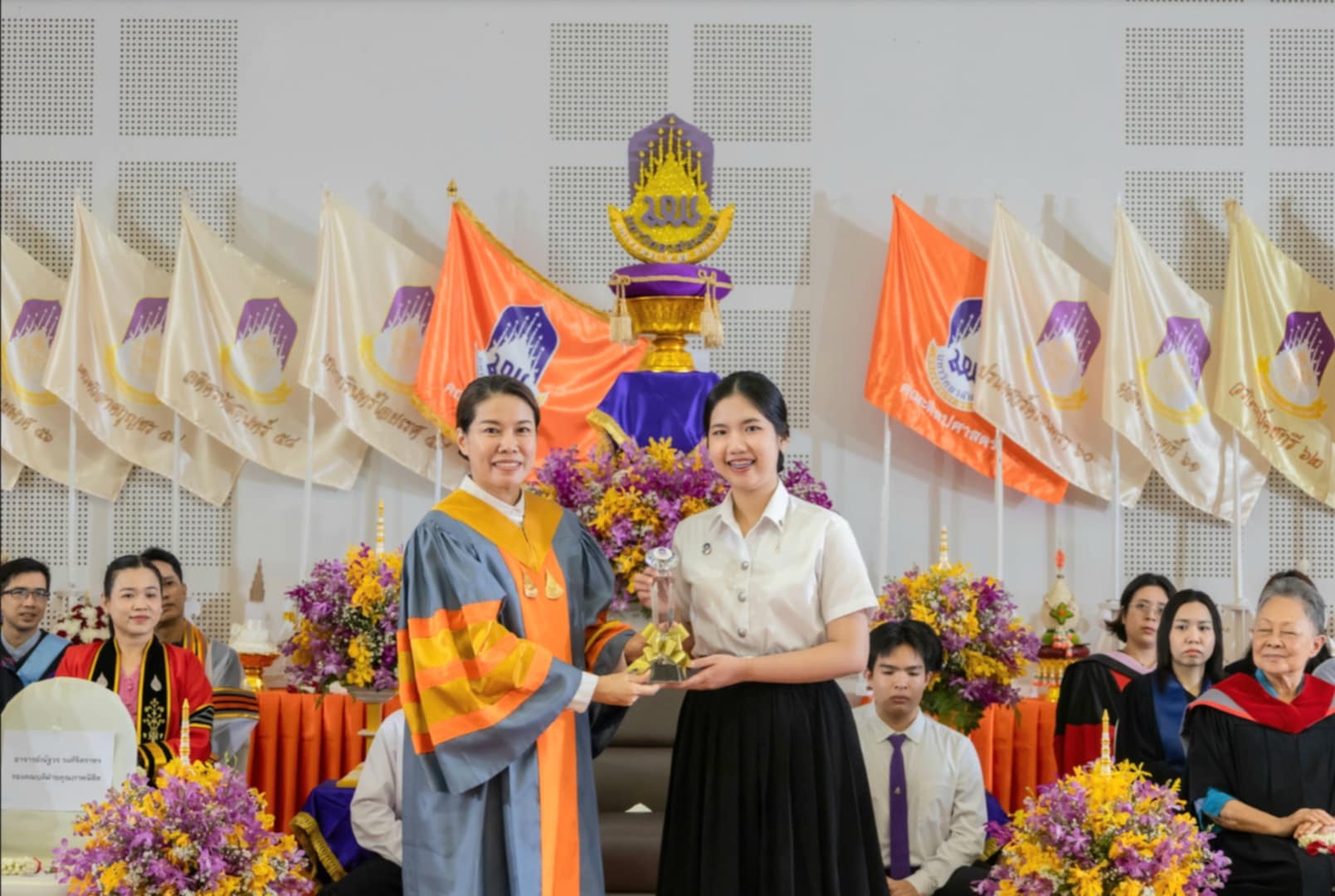 ประธานในพิธีกล่าวให้โอวาทแก่นิสิต โดยเน้น “ความสำคัญของการบริหารเวลาและการสร้างโอกาสการเรียนรู้ให้กับตนเองเพื่อก่อให้เกิดการพัฒนาตนเองตามเป้าหมายที่ตั้งไว้” และรองคณบดีฝ่ายคุณภาพนิสิต อาจารย์ณัฐวร วงศ์จิตราทร ได้ประกาศรับนิสิต รุ่น “ศักติชัยไอยเรศ” ของนิสิตประจำปีการศึกษา ๒๕๖๘