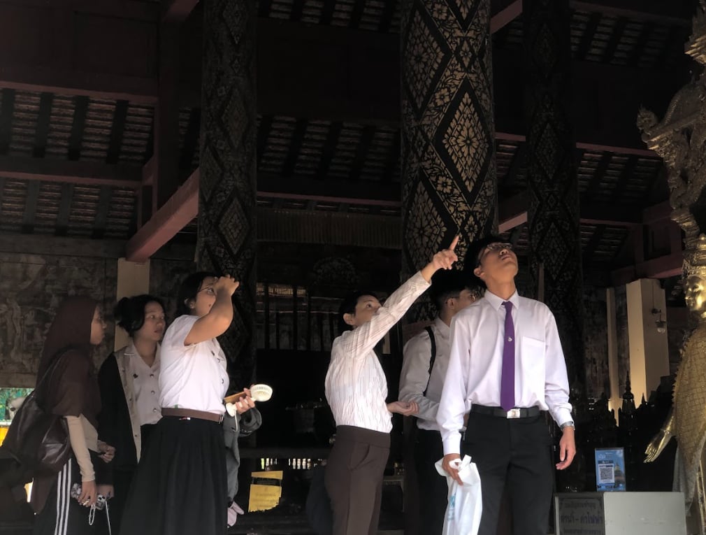 เมื่อวันที่ 16-17 สิงหาคม 2568 สาขาวิชาภาษาฝรั่งเศส คณะศิลปศาสตร์ มหาวิทยาลัยพะเยา ได้จัดโครงการ ภาษาฝรั่งเศสเพื่อวิชาชีพ ณ จังหวัดลำปาง สำหรับนิสิตหลักสูตร ศศ.บ. ภาษาฝรั่งเศส และ ศศ.บ. ภาษาฝรั่งเศสและภาษาอังกฤษ ในรายวิชา 145461 ภาษาฝรั่งเศสสำหรับงานมัคคุเทศก์ โดยมี ดร.สุวรรณา ดลภราดร เป็นผู้รับผิดชอบโครงการฯ ซึ่งกิจกรรมนี้เป็นกิจกรรมย่อยที่ 3 มีวัตถุประสงค์เพื่อให้นิสิตได้รับความรู้ด้านการโรงแรมและสามารถปฏิบัติงานมัคคุเทศก์ภาษาฝรั่งเศส ในสถานที่ท่องเที่ยวสำคัญ ๆ ของจังหวัดลำปาง ได้แก่ วัดพระธาตุลำปางหลวง วัดไหล่หินหลวง วัดศรีชุม วัดจองคา วัดศรีรองเมือง และ วัดพระแก้วดอนเต้าสุชาดาราม ทั้งนี้ ได้รับเกียรติจากวิทยากร คุณทศพล เก็งวินิจ บรรยายหัวข้อ “ธรณีวิทยา การกำเนิดโลก และวิวัฒนาการของโลก” ณ พิพิธภัณฑ์ศูนย์ถ่านหินลิกไนต์ศึกษาฯ (เหมืองแม่เมาะ) และ คุณมินตรา จุรีรัตนากร ผู้จัดการทั่วไปโรงแรมเวียงลคอร ลำปาง ที่ได้สละเวลานำนิสิตเข้าศึกษาดูงานด้านการบริการ รวมถึงบรรยายหัวข้อ “การทำงานในภาคส่วนต่าง ๆ ของโรงแรม”