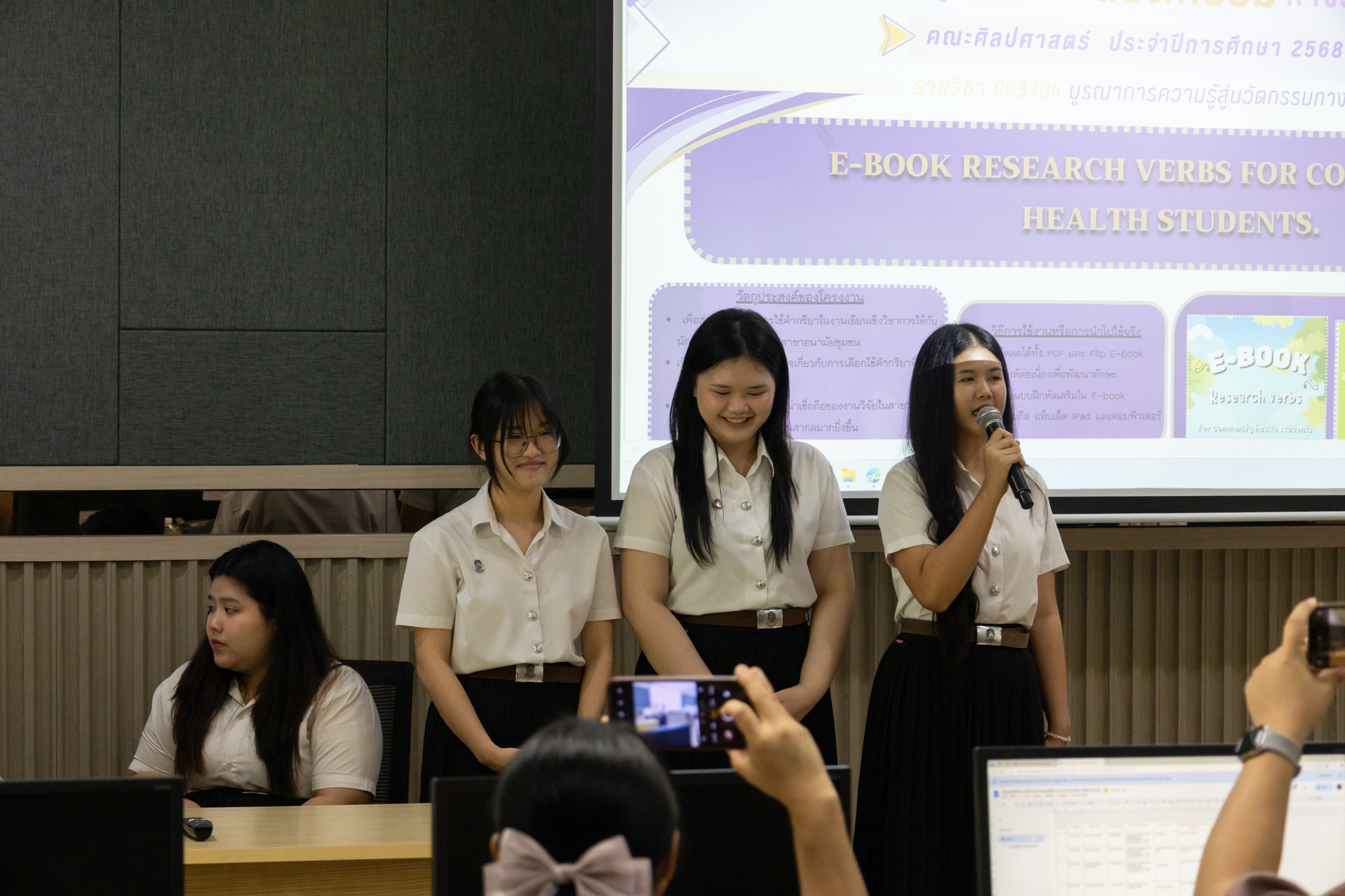 เมื่อวันอังคารที่ 19 กันยายน 2568 งานวิชาการ คณะศิลปศาสตร์ มหาวิทยาลัยพะเยา จัดโครงการวิจัยและพัฒนาหลักสูตรสู่การสร้างนวัตกรรมทางวิชาชีพ ณ ห้องศูนย์ภาษา CE12203 (ศูนย์สอบ) ระหว่างเวลา 13.00-16.00 น. เพื่อส่งเสริมทักษะการดำเนินการวิจัยสำหรับนิสิต โดยมีการนำเสนองานวิจัยของนิสิตคณะศิลปศาสตร์ หลักสูตรศิลปศาสตร์บัณฑิต สาขาวิชาภาษาอังกฤษ ภาษาจีน ภาษาญี่ปุ่น ภาษาไทย และภาษาฝรั่งเศส ทั้งนี้ ได้รับเกียรติจาก ผู้ช่วยศาสตราจารย์ ดร.คมกฤช ตาชม รองคณบดีฝ่ายวิชาการ เป็นประธานกล่าวเปิดโครงการฯ และมี ดร.ชนาภา ดวงไฟ รองคณบดีฝ่ายกิจการพิเศษ และ อาจารย์ณัฐวร วงศ์จิตราทร รองคณบดีฝ่ายคุณภาพนิสิต พร้อมด้วยประธานหลักสูตร ทั้ง 5 สาขาวิชา คณาจารย์ และนิสิตคณะศิลปศาสตร์ เข้าร่วมกิจกรรมเป็นจำนวนมาก