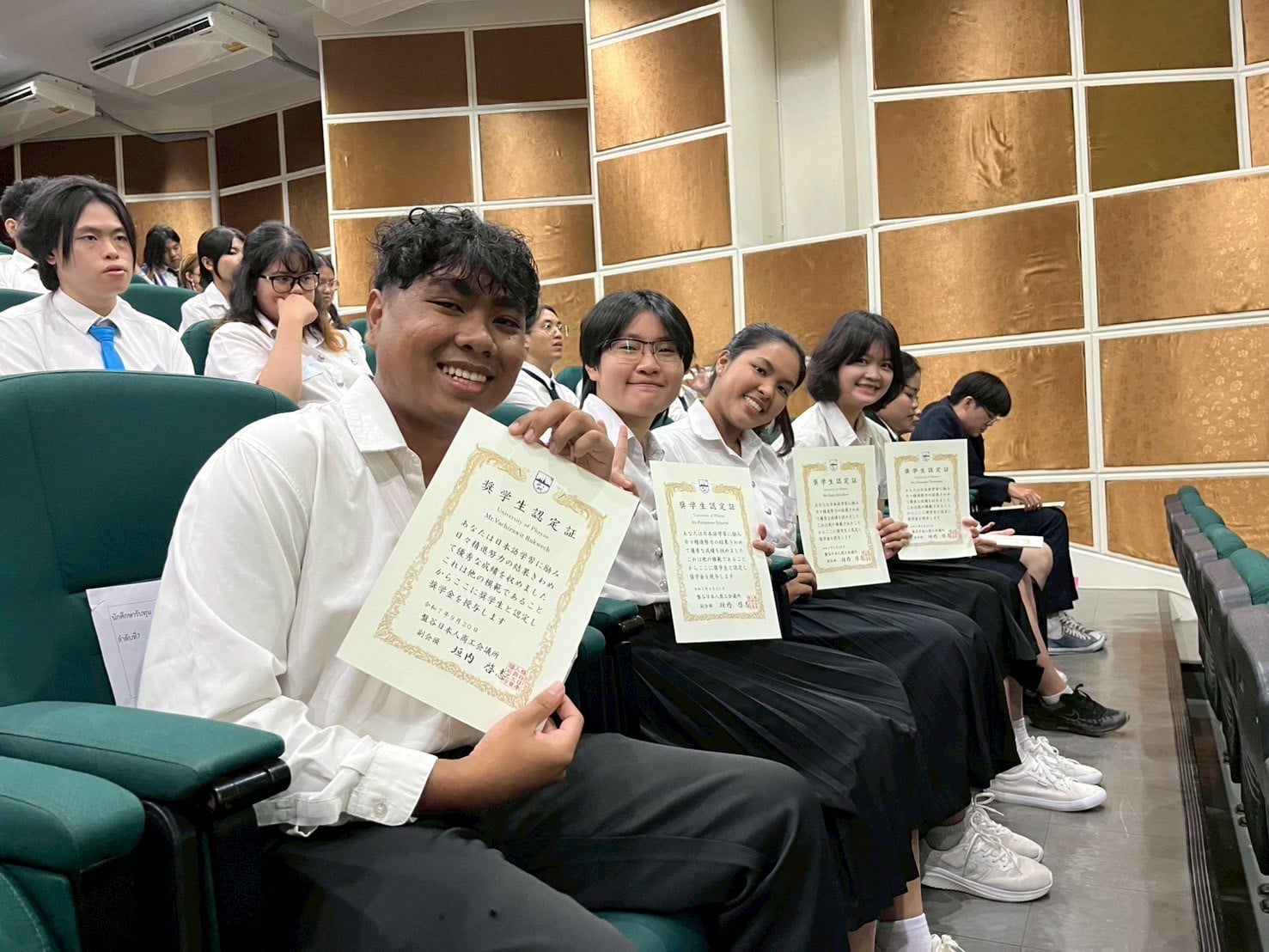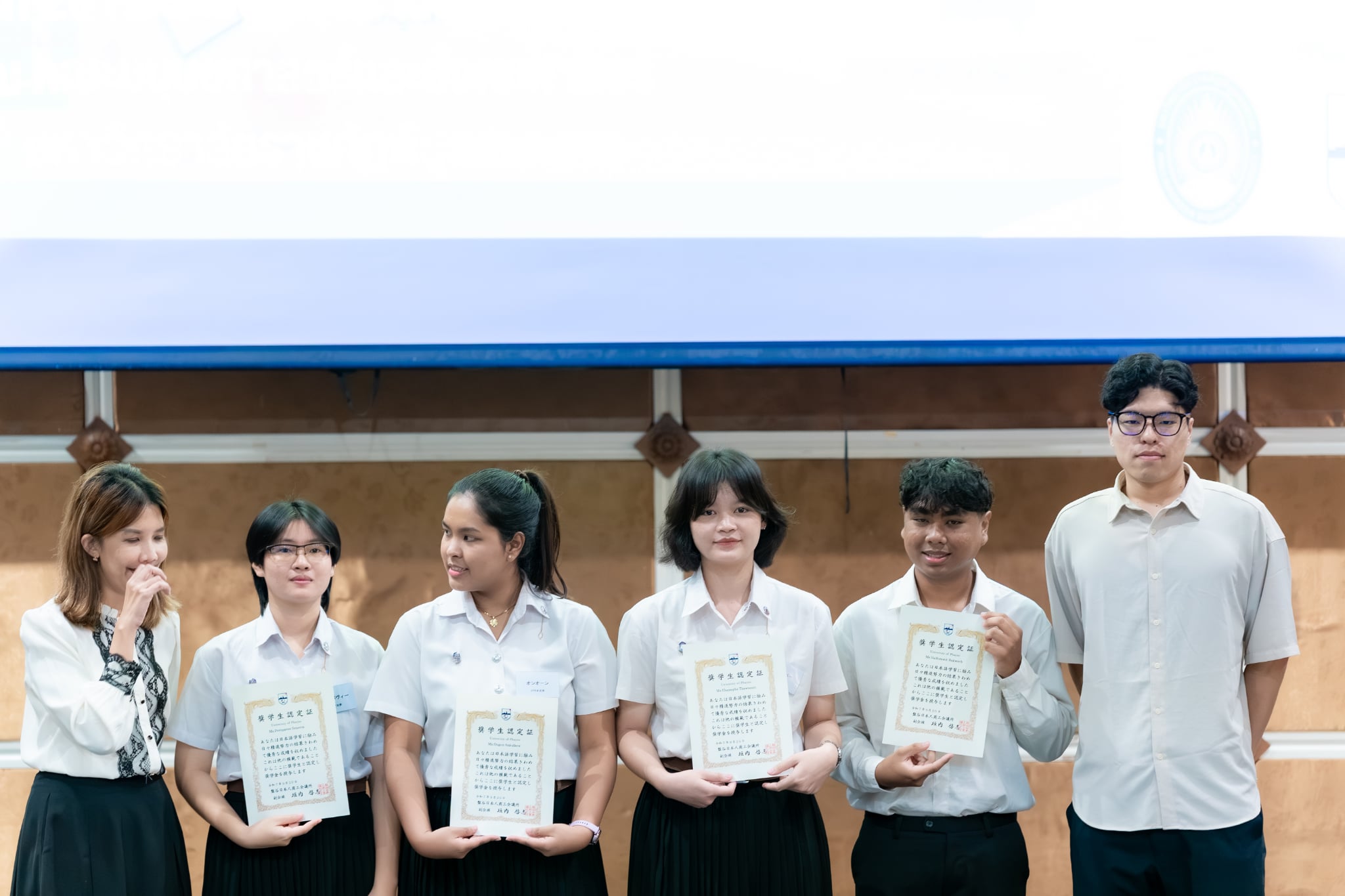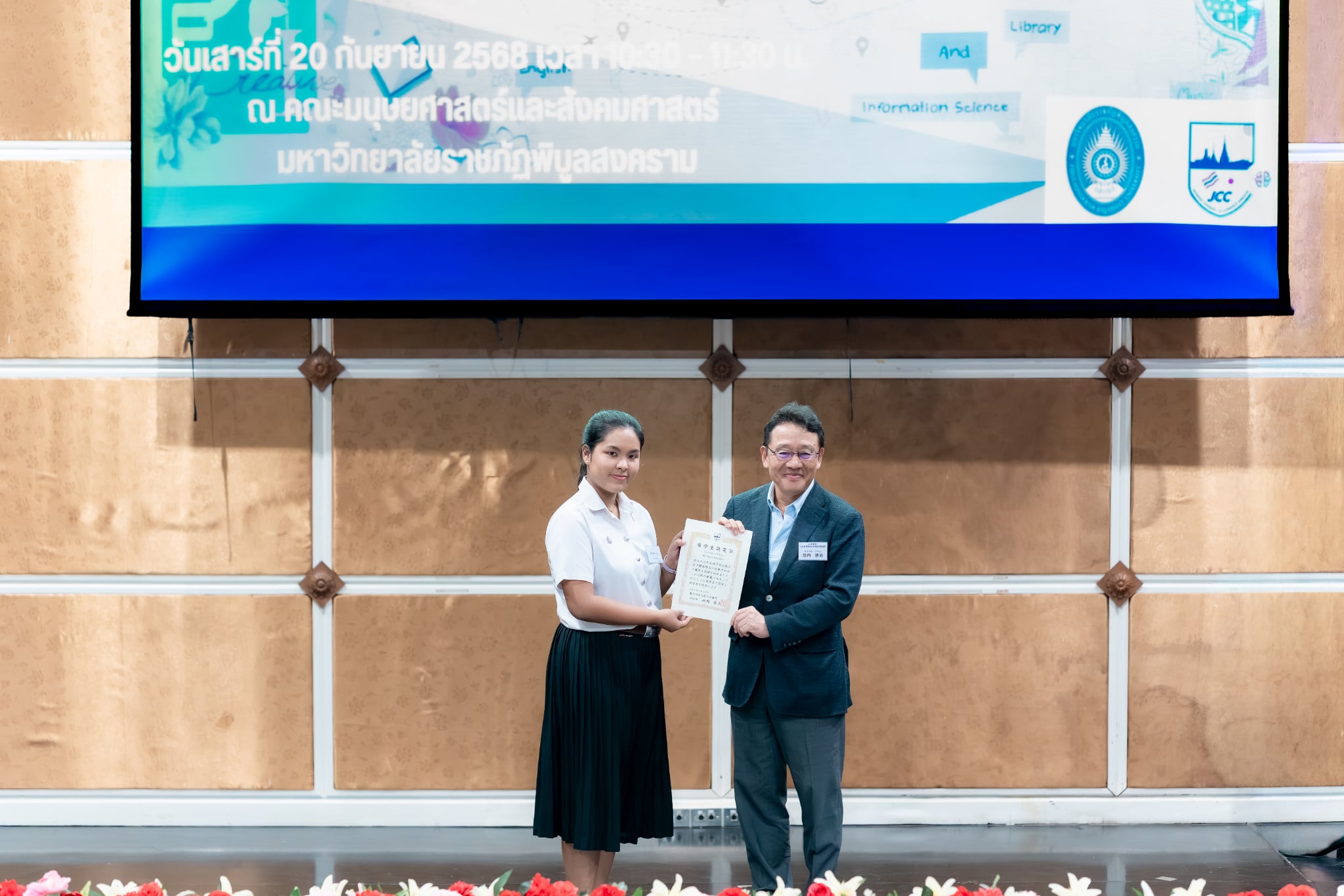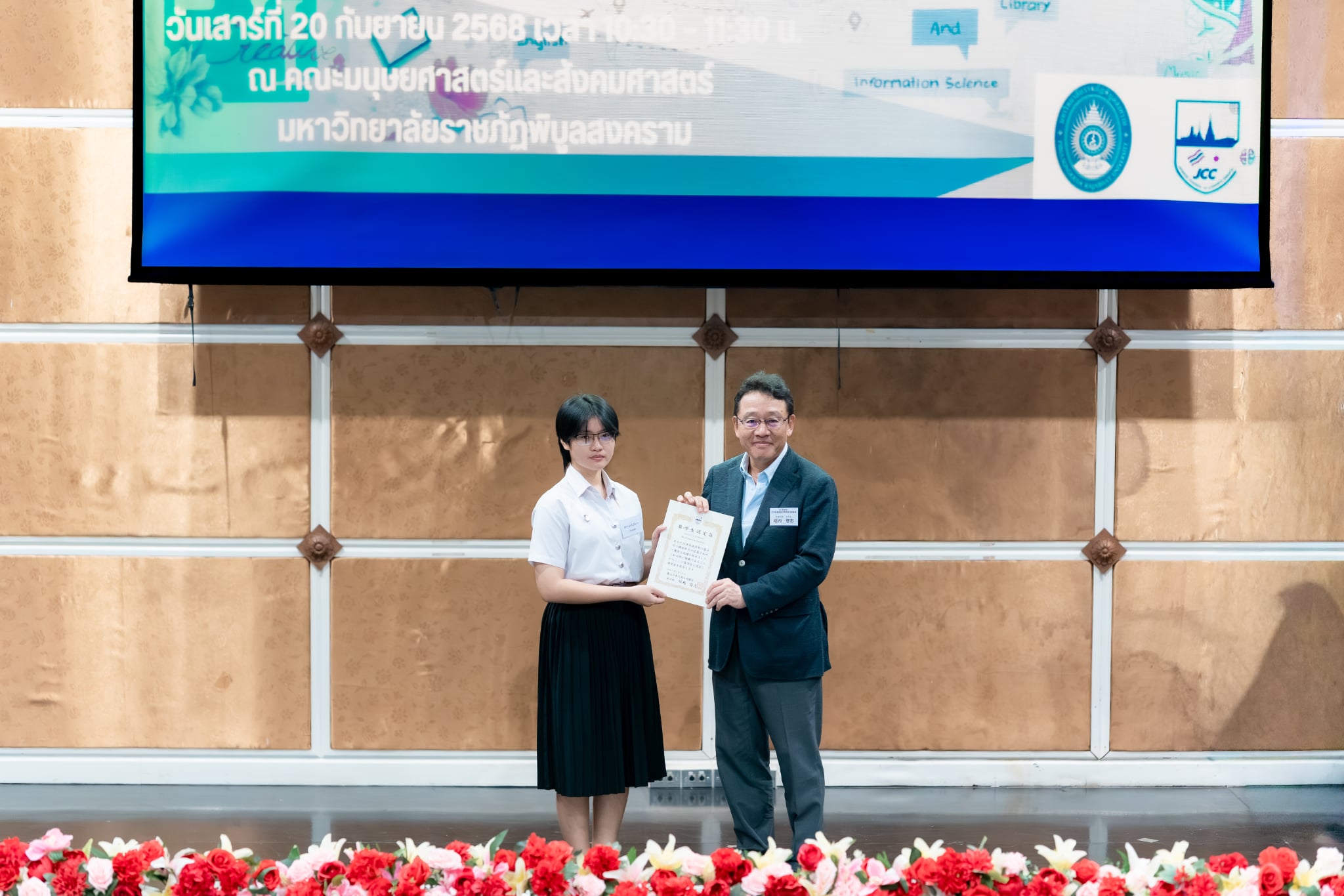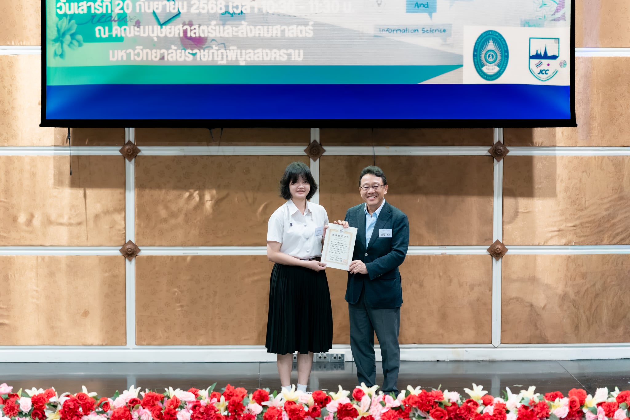 เมื่อวันเสาร์ที่ 20 กันยายน 2568 สาขาวิชาภาษาญี่ปุ่น คณะศิลปศาสตร์ มหาวิทยาลัยพะเยา ได้เข้าร่วม พิธีมอบทุนการศึกษา โดยหอการค้าญี่ปุ่น กรุงเทพฯ (JCC) ครั้งที่ 17 และ งานเสวนาญี่ปุ่นธุรกิจ ครั้งที่ 14 ซึ่งจัดขึ้นโดยเครือข่ายภาษาญี่ปุ่นและญี่ปุ่นศึกษา ระดับอุดมศึกษาภาคเหนือ (NTUCJ) ณ อาคารคณะมนุษยศาสตร์และสังคมศาสตร์ มหาวิทยาลัยราชภัฏพิบูลสงคราม (ส่วนทะเลแก้ว) จ.พิษณุโลก เพื่อเสริมสร้างเครือข่ายด้านการเรียนการสอนภาษาญี่ปุ่น ระดับอุดมศึกษาภาคเหนือ รวมถึงเพื่อเตรียมความพร้อมในการทำงานด้านธุรกิจญี่ปุ่นแก่นิสิต โดยมีนิสิตสาขาวิชาภาษาญี่ปุ่น ชั้นปีที่ 3 คณะศิลปศาสตร์ เข้ารับทุนการศึกษา จำนวน 4 ราย ประกอบด้วย 1) นางสาวชนาภา ทวีสัตย์ 2) นางสาวองค์อร สกุลแก้ว 3) นางสาวพรปวีณ์ ศรีเสริม และ 4) นายวชิรวิทย์ รักเวช
