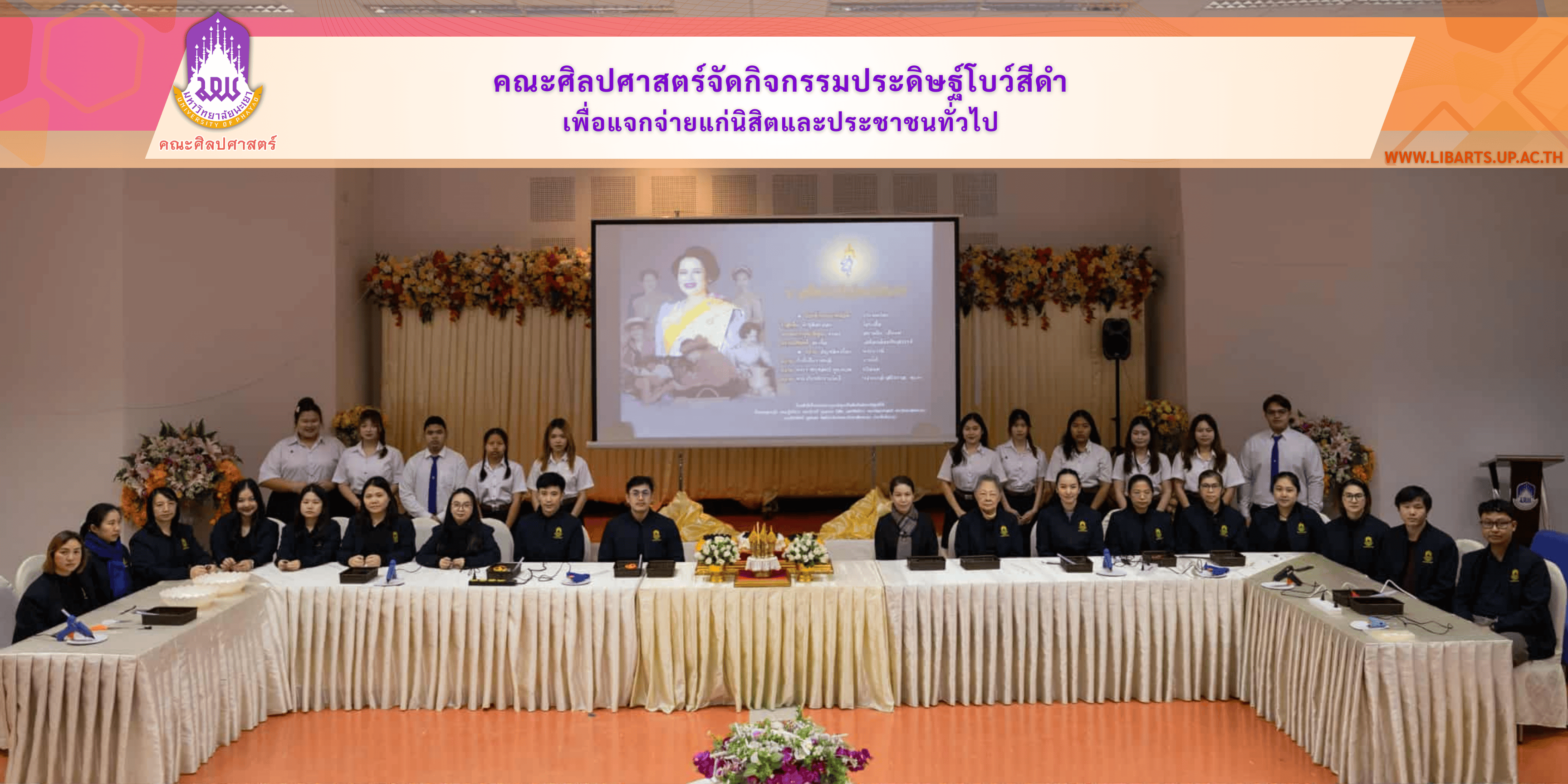 คณะศิลปศาสตร์ มหาวิทยาลัยพะเยา จัดกิจกรรมประดิษฐ์โบว์สีดำเพื่อมอบให้แก่นิสิตและประชาชนทั่วไป ในการร่วมถวายความอาลัยแด่ สมเด็จพระนางเจ้าสิริกิติ์ พระบรมราชินีนาถ พระบรมราชชนนีพันปีหลวง