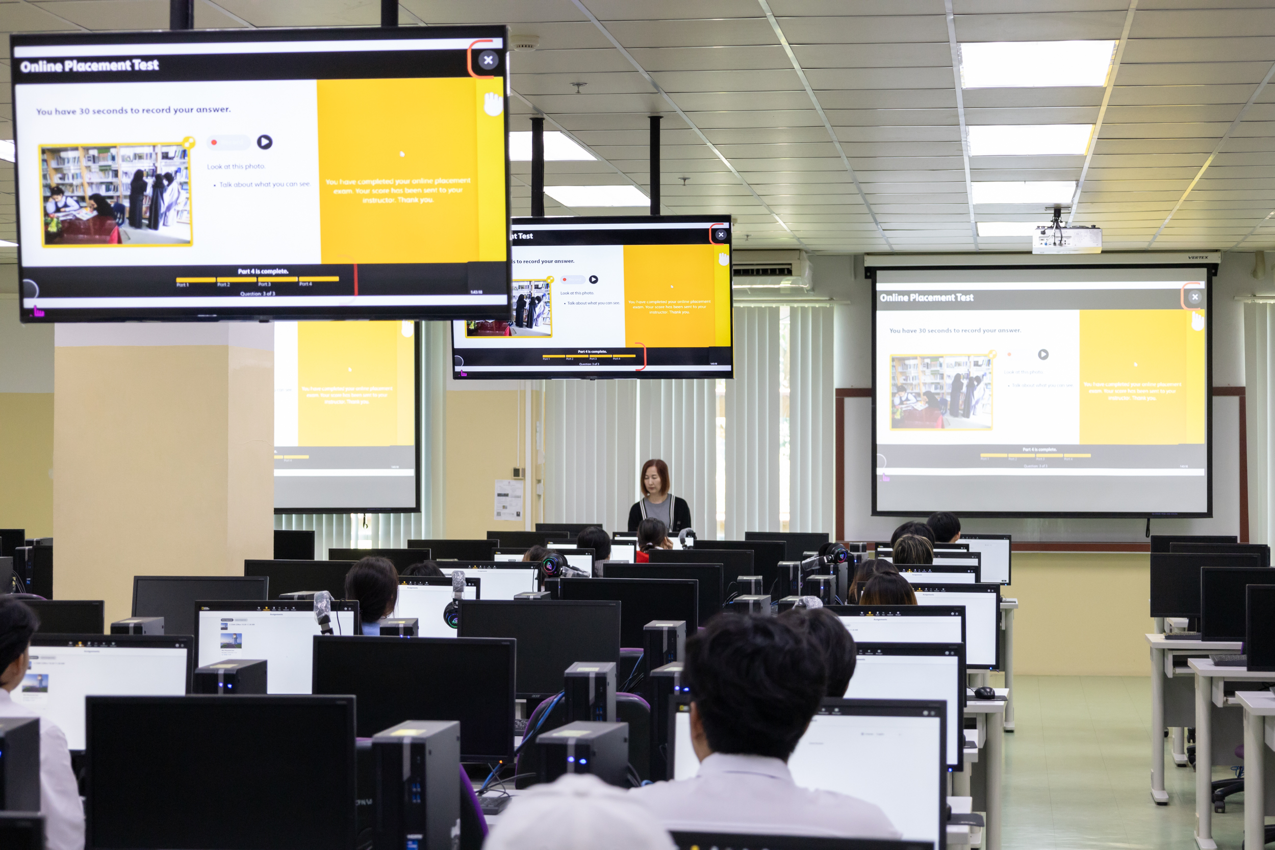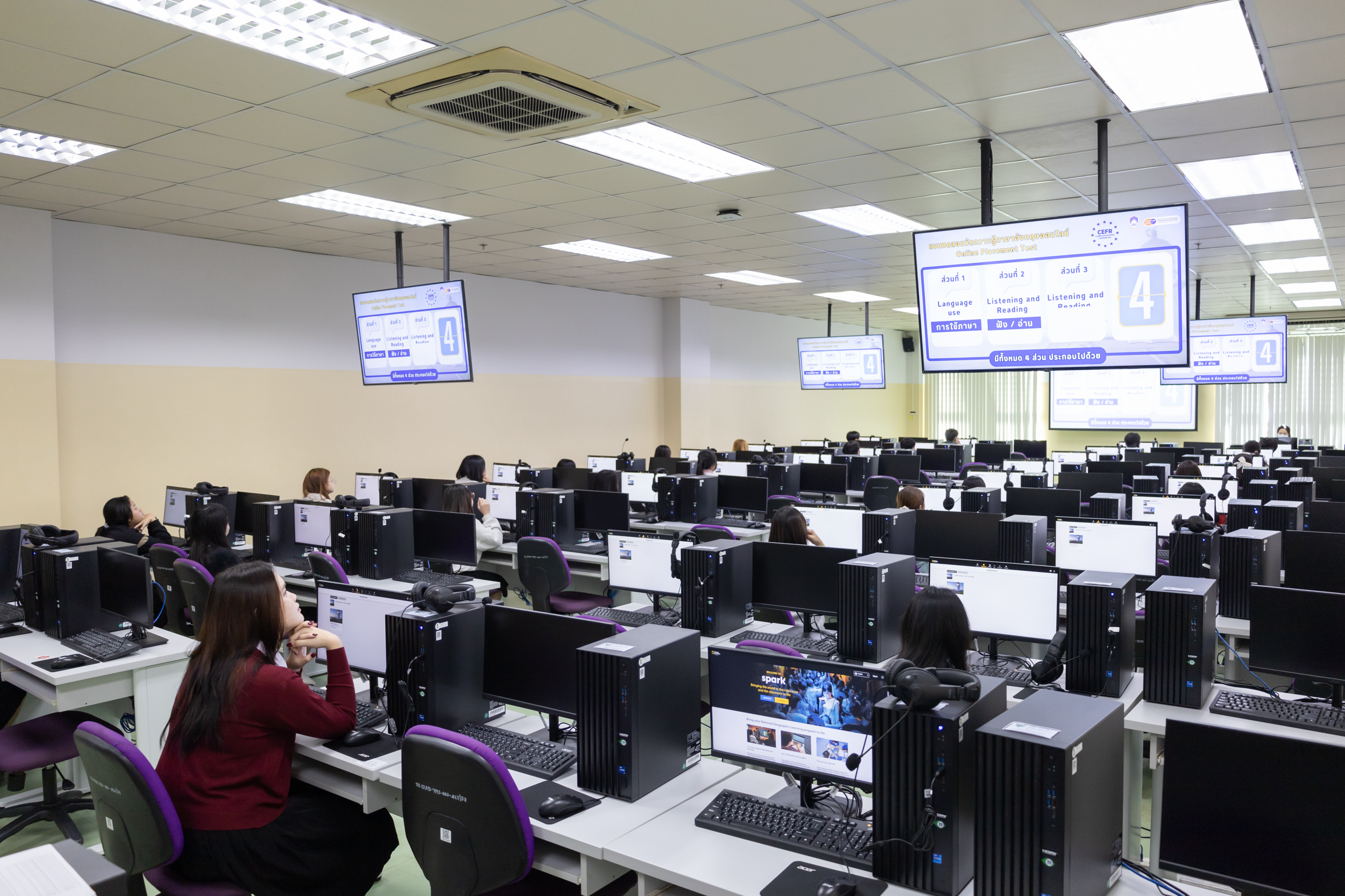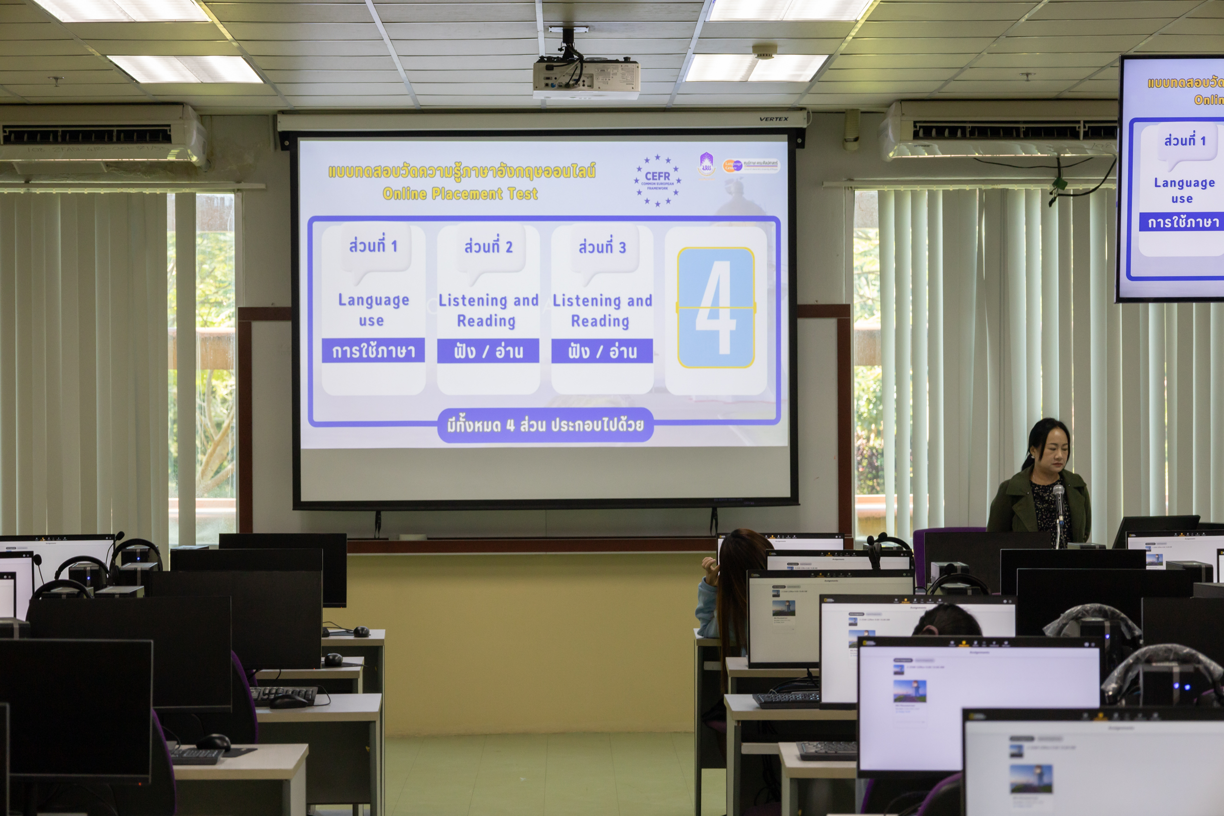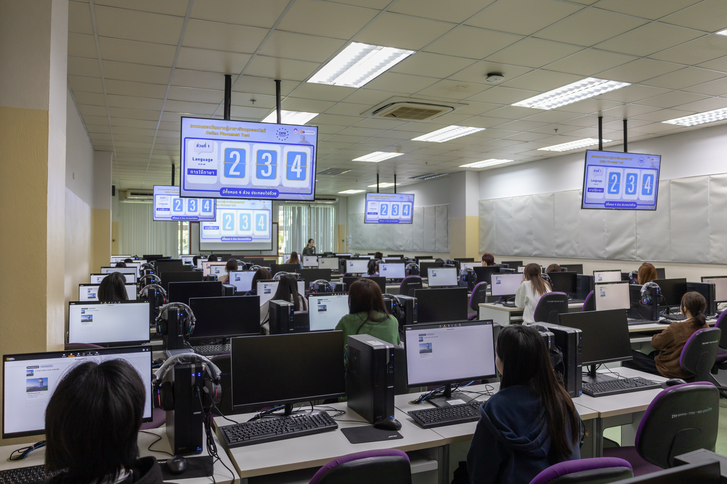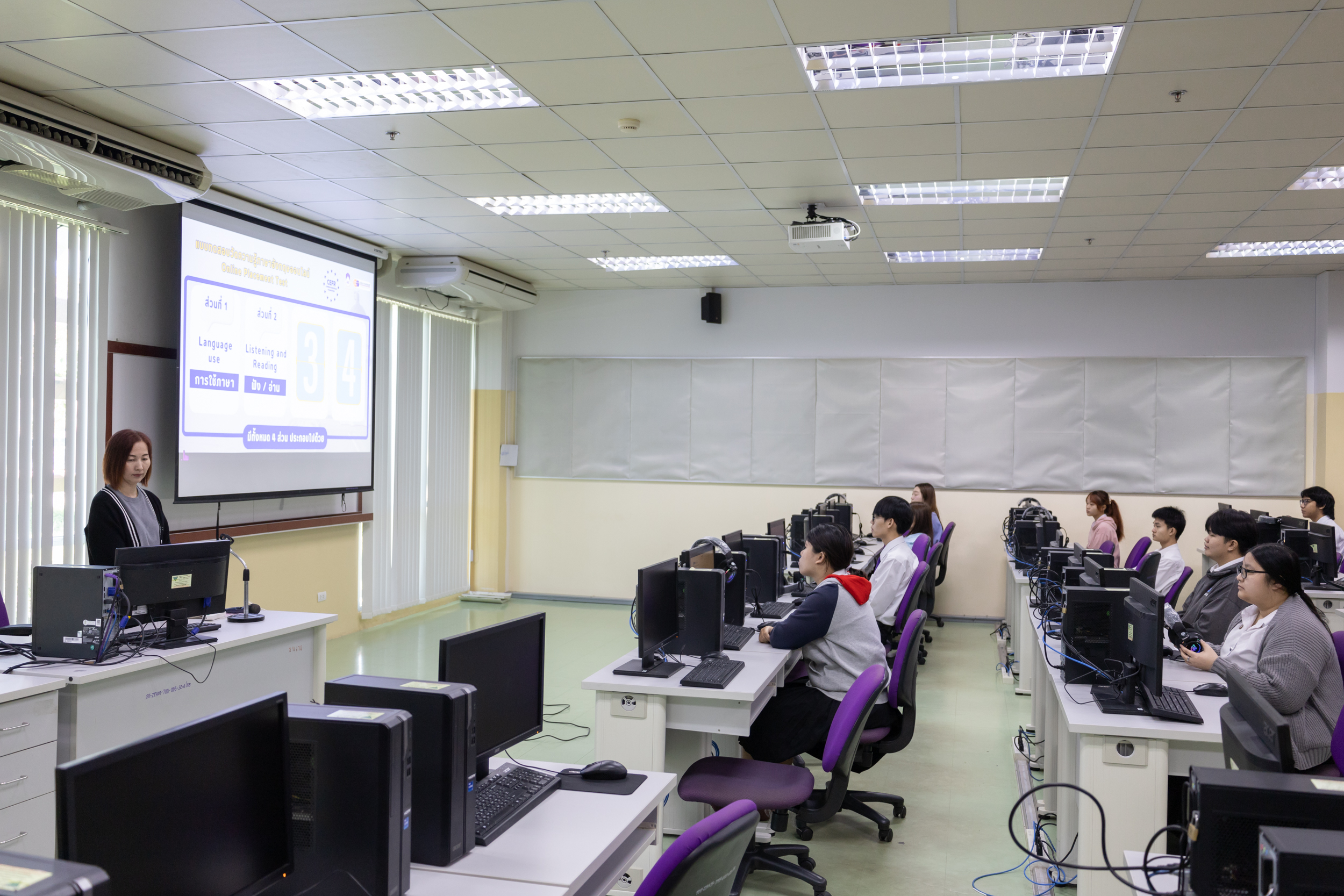 ศูนย์ภาษา คณะศิลปศาสตร์ มหาวิทยาลัยพะเยา นำโดย ดร.ชนาภา ดวงไฟ รองคณบดีฝ่ายกิจการพิเศษ และงานศูนย์ภาษา ได้จัดทดสอบความสามารถทางภาษาอังกฤษสำหรับนิสิตมหาวิทยาลัยพะเยา คณะบริหารธุรกิจและนิเทศศาสตร์ คณะวิทยาศาสตร์ คณะวิทยาศาสตร์การแพทย์ คณะวิศวกรรมศาสตร์ คณะศิลปศาสตร์ และ คณะสถาปัตยกรรมศาสตร์และศิลปกรรมศาสตร์ ในวันที่ 22-23 พฤศจิกายน 2568 จำนวน 2,097 คน โดยใช้ระบบปัญญาประดิษฐ์ (AI-powered English Assessment) เพื่อประเมินระดับความสามารถทางภาษาอังกฤษตามกรอบมาตรฐานสากล CEFR – Common European Framework of Reference for Languages