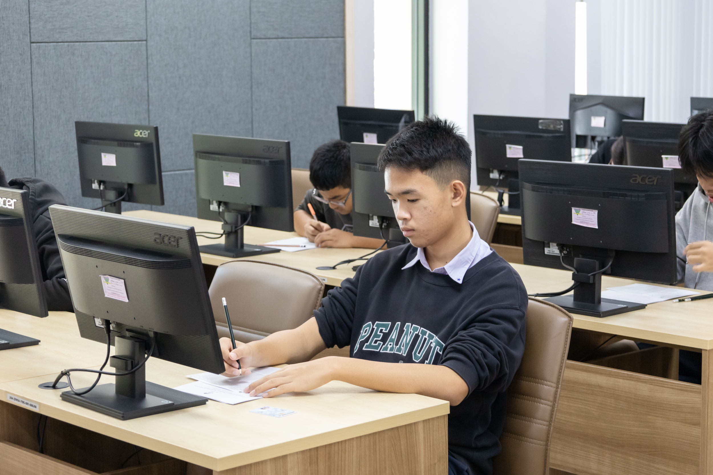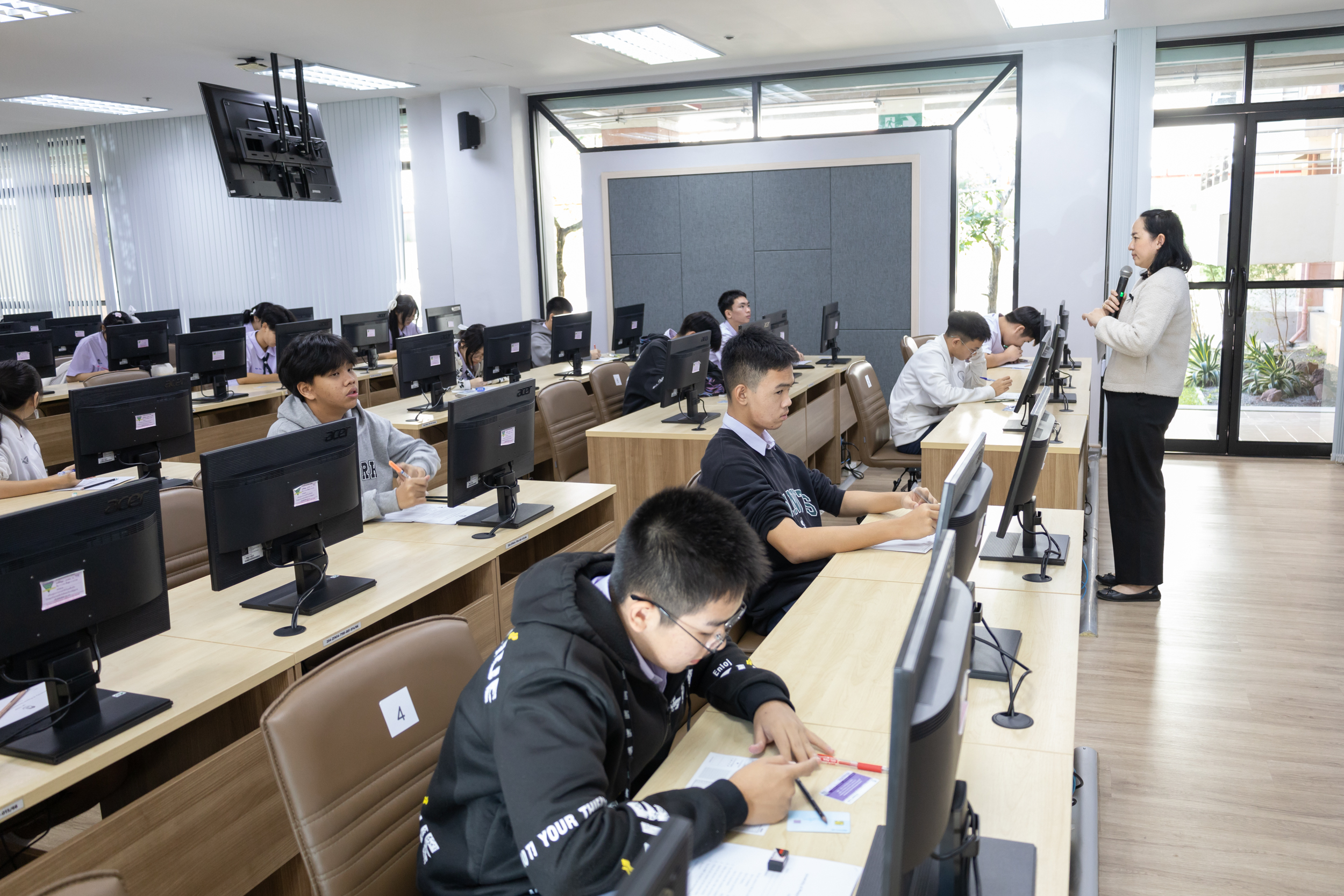 ศูนย์ภาษา คณะศิลปศาสตร์ มหาวิทยาลัยพะเยา ได้จัดสอบวัดความรู้ภาษาอังกฤษแก่นักเรียนโรงเรียนสาธิต มหาวิทยาลัยพะเยา ระดับมัธยมศึกษา ที่ 4-6 จำนวน 201 คน ด้วยข้อสอบศูนย์ภาษา เพื่อประเมินทักษะด้านภาษาอังกฤษ และเป็นข้อมูลในการพัฒนาทักษะความรู้ด้านภาษาอังกฤษให้มีคุณภาพในระดับสากล ตามนโยบายการพัฒนาศักยภาพผู้เรียนในศตวรรษที่ 21 โดยจัดขึ้นในวันจันทร์ที่ 24 พฤศจิกายน 2568 ณ ห้องศูนย์ทดสอบและห้องปฏิบัติการทางภาษา (CE 12203) คณะศิลปศาสตร์ มหาวิทยาลัยพะเยา