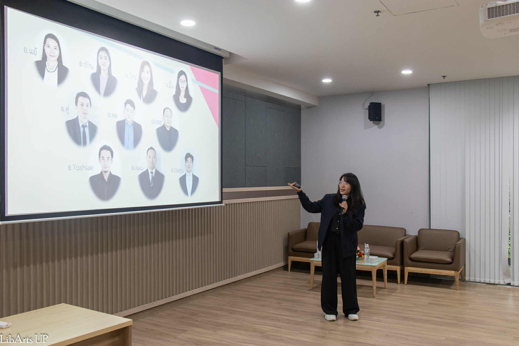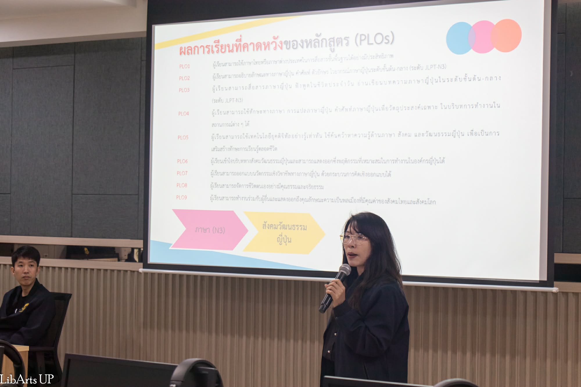 การต้อนรับในครั้งนี้นำโดย ผู้ช่วยศาสตราจารย์ ดร.จิตติมา กาวีระ คณบดีคณะศิลปศาสตร์ พร้อมด้วย อาจารย์ณัฐวร วงศ์จิตราทร รองคณบดีฝ่ายคุณภาพนิสิต และคณะประธานหลักสูตรระดับปริญญาตรี ได้แก่ ดร.เบญจพร เทพสีหนู ผู้ช่วยคณบดีฝ่ายวิชาการ และประธานหลักสูตรศิลปศาสตรบัณฑิต สาขาวิชาภาษาอังกฤษ ดร.จารุกัญจ์ จิตรวงศ์นันท์ ประธานหลักสูตรศิลปศาสตรบัณฑิต สาขาวิชาภาษาฝรั่งเศส ดร.วรัญญา ยิ่งยงศักดิ์ ประธานหลักสูตรศิลปศาสตรบัณฑิต สาขาวิชาภาษาไทย อาจารย์พันธุ์พิชญา ปัญญาฟู ประธานหลักสูตรศิลปศาสตรบัณฑิต สาขาวิชาภาษาญี่ปุ่น และผู้แทนหลักสูตรศิลปศาสตรบัณฑิต สาขาวิชาภาษาจีน ในโอกาสนี้ คณะศิลปศาสตร์ได้ร่วมกันนำเสนอข้อมูลหลักสูตรและแนวทางการจัดการเรียนการสอน โดยมุ่งเน้นการพัฒนาบัณฑิตให้มีสมรรถนะด้านภาษาและ Global Mindset เพื่อรองรับการทำงานในบริบทสากล อาทิ หลักสูตรศิลปศาสตรบัณฑิต สาขาวิชาภาษาไทย ภาษาฝรั่งเศส ภาษาจีน ภาษาญี่ปุ่น และภาษาอังกฤษ ซึ่งเปิดโอกาสให้นิสิตเลือกเรียน วิชาโทเพิ่มอีกหนึ่งภาษา เพื่อพัฒนาศักยภาพบัณฑิตสองภาษา รวมถึง หลักสูตรสองปริญญา ภาษาอังกฤษ–จีน และภาษาอังกฤษ–ฝรั่งเศส ที่สามารถสำเร็จการศึกษาได้ภายในระยะเวลา 5 ปีหรือน้อยกว่า