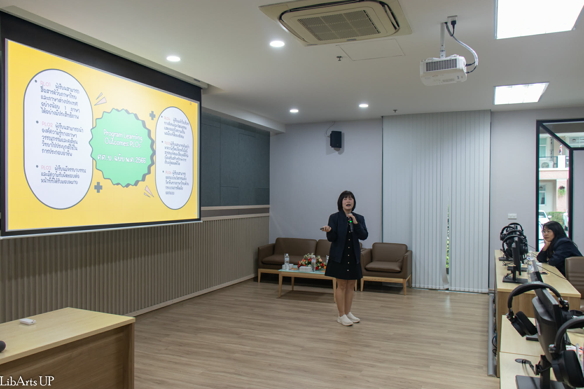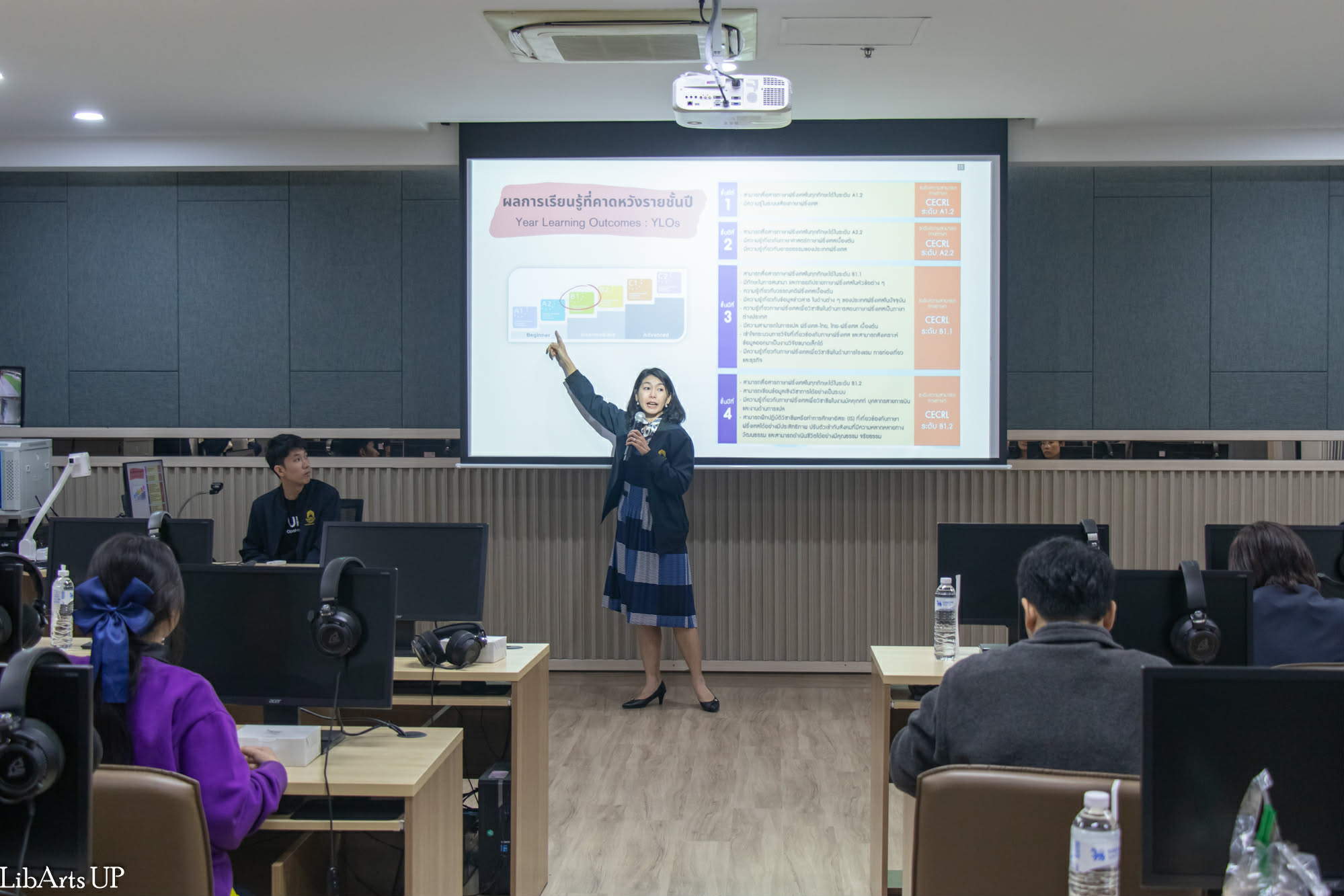 นอกจากนี้ ยังได้นำเสนอความพร้อมด้านเครือข่ายความร่วมมือกับสถานประกอบการ เพื่อส่งเสริมการฝึกงานและการปฏิบัติสหกิจศึกษาทั้งในประเทศและต่างประเทศ ความพร้อมของคณาจารย์ผู้สอนทั้งชาวไทยและชาวต่างชาติที่มีคุณวุฒิและได้รับการรับรองคุณภาพ ตลอดจนสิ่งสนับสนุนการเรียนรู้ด้านภาษาที่ทันสมัยและได้มาตรฐานสากล เช่น ห้องปฏิบัติการภาษา ศูนย์ภาษาเพื่อการทดสอบมาตรฐานสากล โปรแกรมฝึกภาษา และพื้นที่ Learning Space ที่เอื้อต่อการเรียนรู้ด้วยตนเอง การศึกษาดูงานในครั้งนี้สะท้อนถึงความพร้อมของคณะศิลปศาสตร์ในการเป็นแหล่งเรียนรู้ด้านภาษาและวัฒนธรรม และช่วยสร้างความเชื่อมั่นให้แก่สถานศึกษา ครู อาจารย์ และนักเรียน ในการวางแผนศึกษาต่อในระดับอุดมศึกษาอย่างมีคุณภาพ