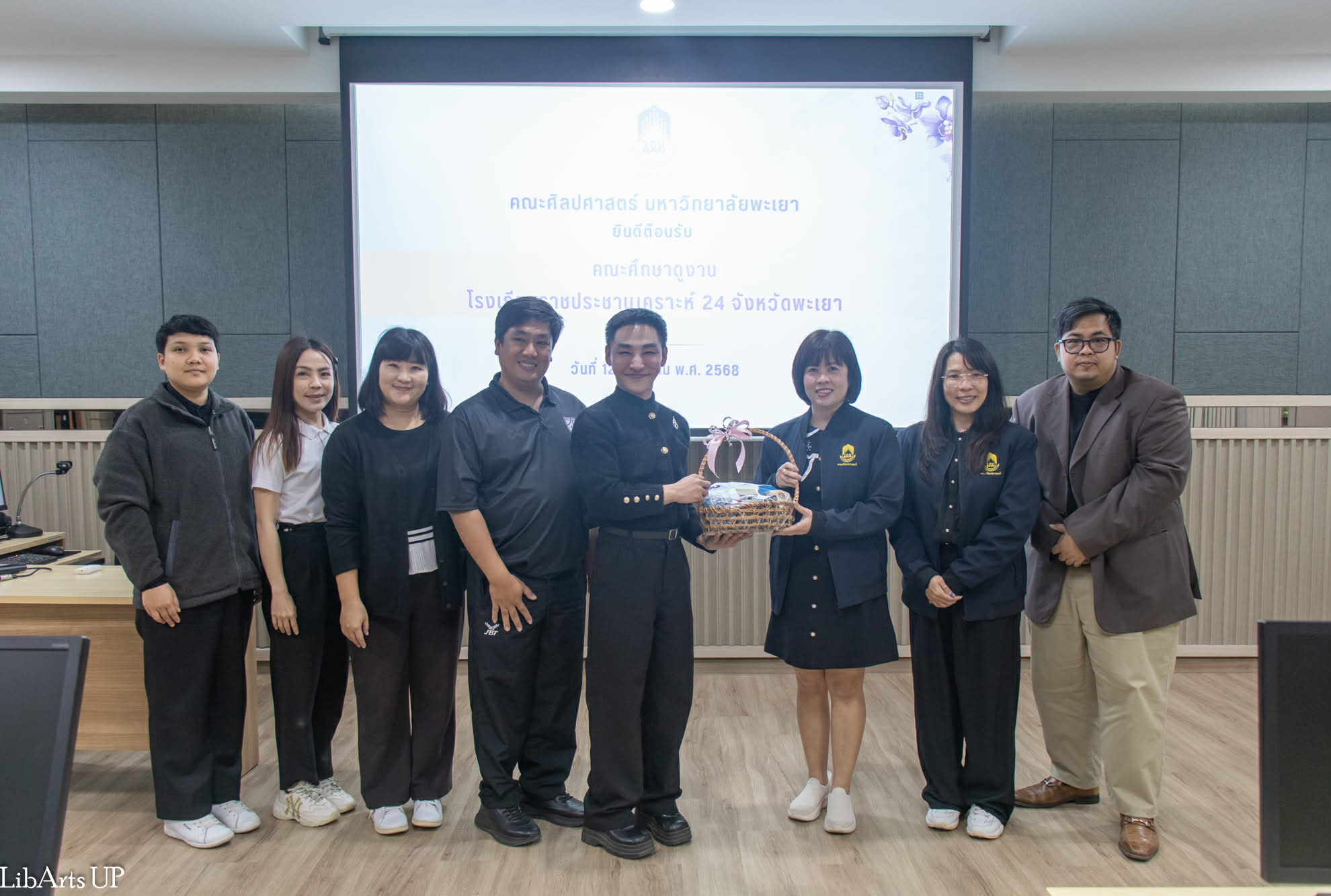 วันศุกร์ที่ 12 ธันวาคม 2568 คณะศิลปศาสตร์ มหาวิทยาลัยพะเยาต้อนรับคณะผู้บริหาร อาจารย์และนักเรียนจากโรงเรียนราชประชานุเคราะห์ 24 จังหวัดพะเยา ในโอกาสเข้าศึกษาดูงานด้านหลักสูตรและการจัดการเรียนการสอนระดับปริญญาตรี ระหว่างเวลา 13.00–15.00 น. โดยมีคณะครูจำนวน 15 คน และนักเรียนระดับชั้นมัธยมศึกษาปีที่ 4–6 จำนวน 96 คน เข้าร่วมกิจกรรม เพื่อเปิดโลกทัศน์ทางการศึกษาและเสริมสร้างประสบการณ์การเรียนรู้ในระดับอุดมศึกษา