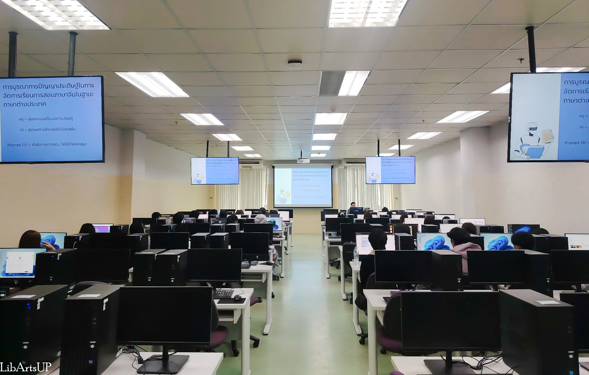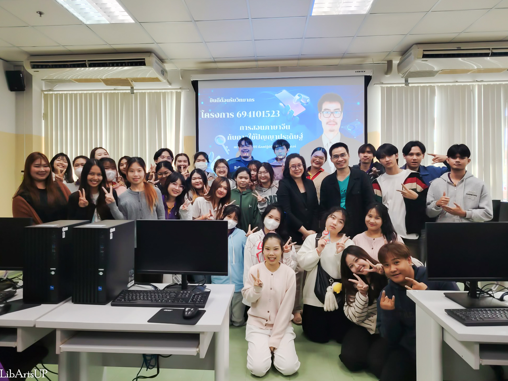 สาขาวิชาภาษาจีน คณะศิลปศาสตร์ จัดโครงการ การสอนภาษาจีนกับการใช้ปัญญาประดิษฐ์ ในวันเสาร์ที่ 24 มกราคม 2569 เวลา 08.30–16.30 น. ณ ห้อง ICT 1105 ห้องปฏิบัติการคอมพิวเตอร์ คณะเทคโนโลยีสารสนเทศและการสื่อสาร มหาวิทยาลัยพะเยา เพื่อให้นิสิตมีความรู้ความเข้าใจ และสามารถใช้เครื่องมือปัญญาประดิษฐ์ในการสอนภาษาจีนในฐานะภาษาต่างประเทศได้ โดยได้รับเกียรติจาก ผู้ช่วยศาสตราจารย์ ดร.นครินทร์ ชัยแก้ว รองคณบดีฝ่ายคุณภาพนิสิต คณะเทคโนโลยีสารสนเทศและการสื่อสาร เป็นวิทยากรอบรมเชิงปฎิบัติการ ในหัวข้อ “การสร้างสื่อการสอนแอนิเมชั่นด้วยปัญญาประดิษฐ์ (AI)” และ อาจารย์ภัทรพงศ์ พื้นงาม อาจารย์ประจำสาขาวิชาภาษาจีน คณะศิลปศาสตร์ เป็นวิทยากรอบรมเชิงปฎิบัติการในหัวข้อ “การสอนภาษาจีนยุค AI: 10 ทักษะดิจิทัลที่ครูมือใหม่ต้องรู้” โดยมี ดร.สุนทรี ศรีวันทนียกุล อาจารย์ประจำสาขาวิชาภาษาจีน คณะศิลปศาสตร์ เป็นผู้รับผิดชอบโครงการฯ