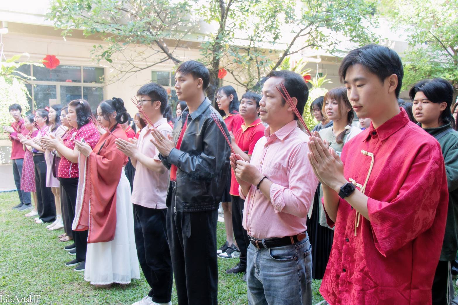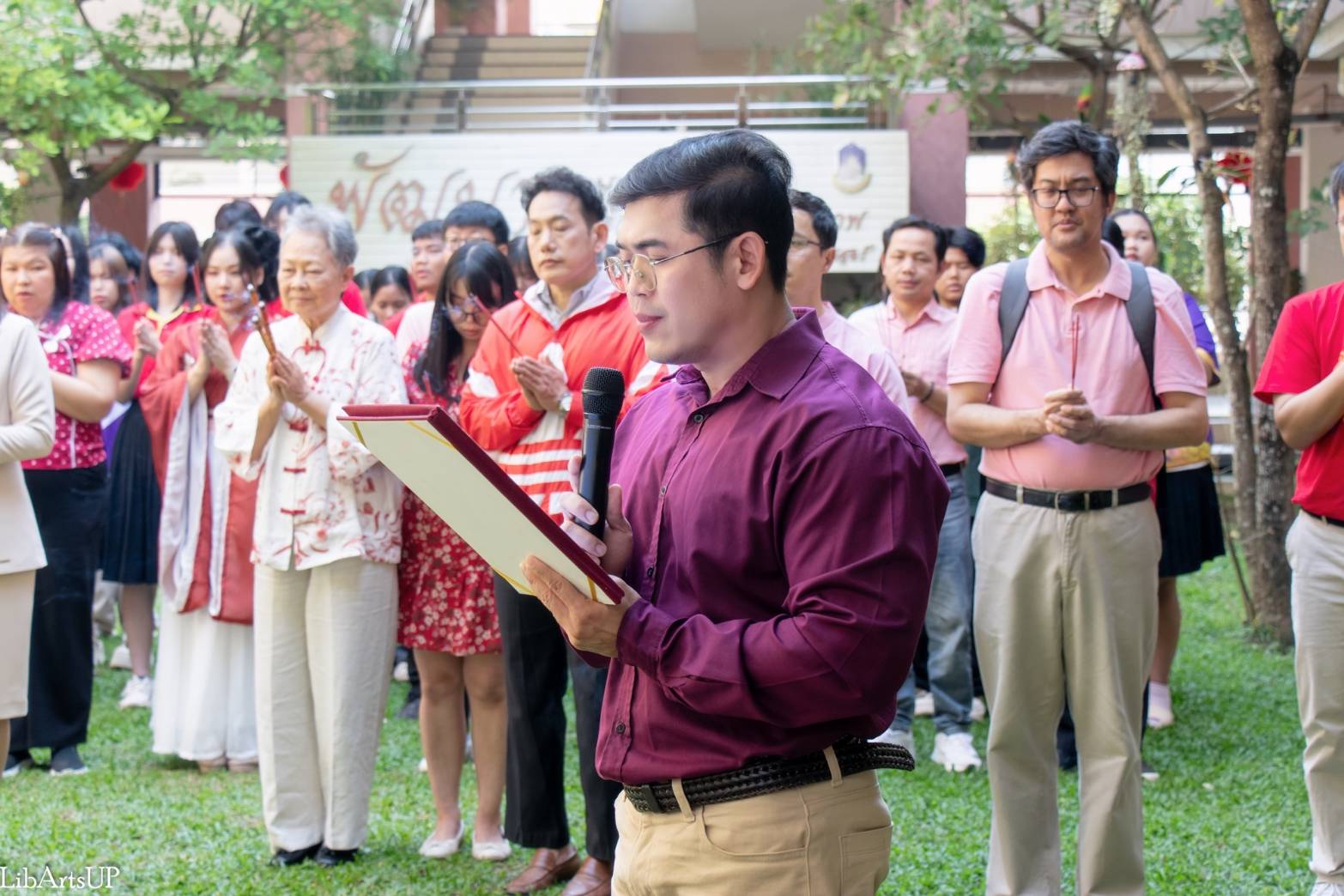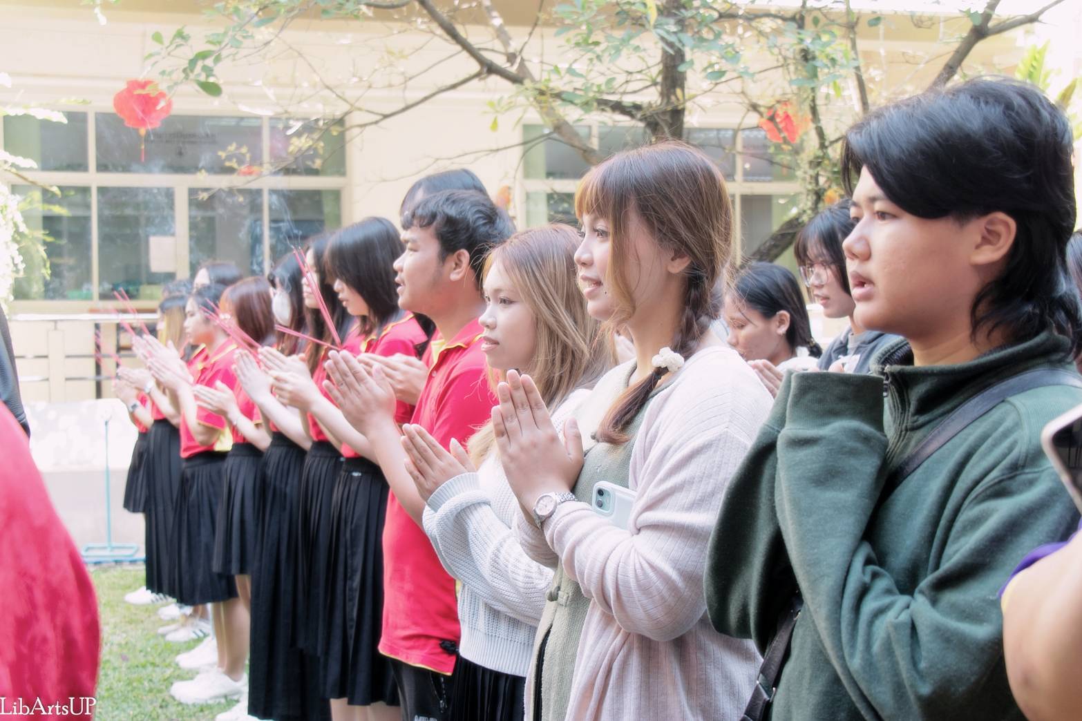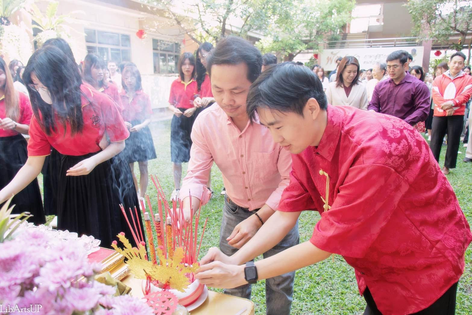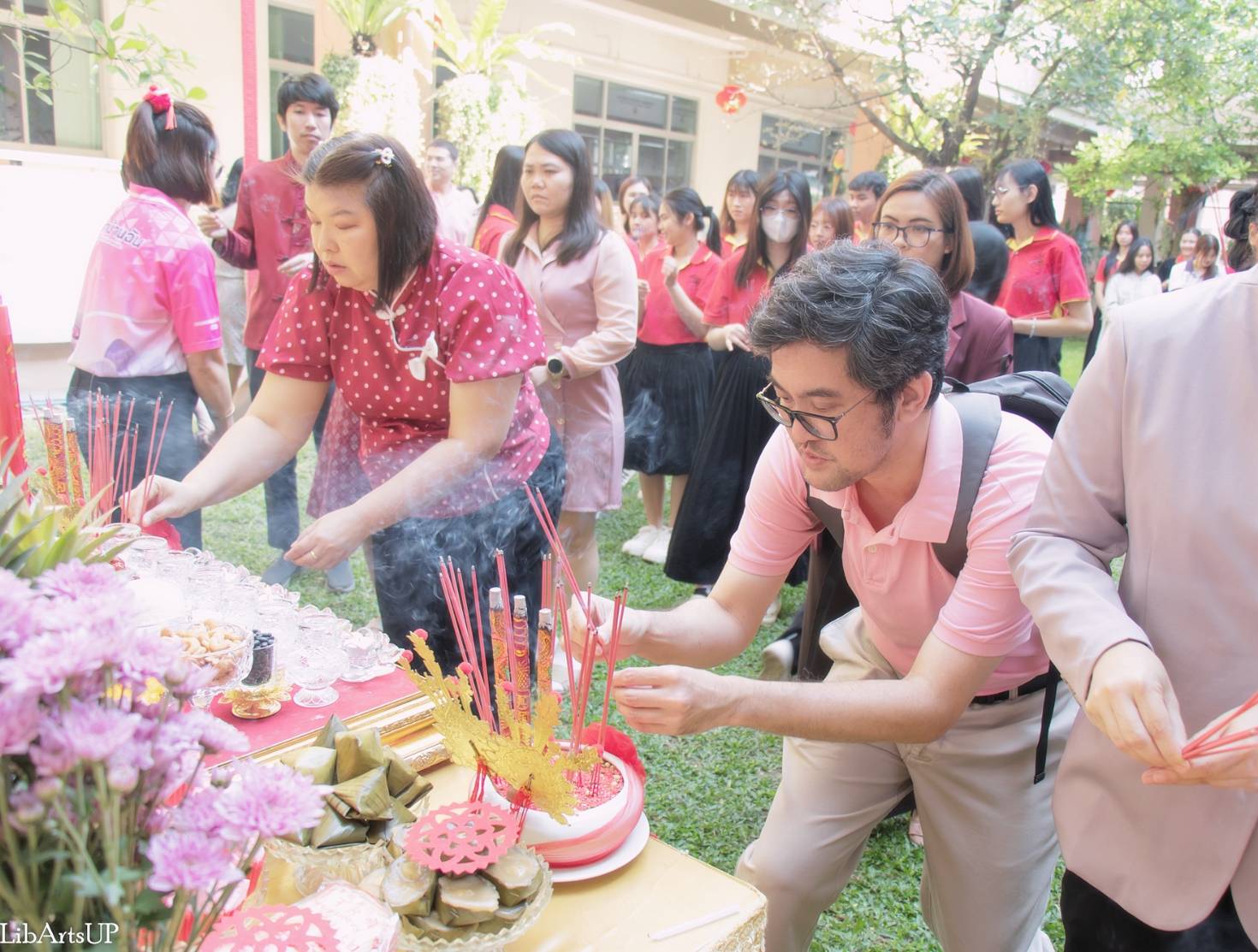 คณะศิลปศาสตร์จัดพิธีสักการะสิ่งศักดิ์สิทธิ์ เนื่องในโอกาสวันตรุษจีน ในวันอังคารที่ 17 กุมภาพันธ์ 2569 เวลา 10.00 น. ณ คณะศิลปศาสตร์ มหาวิทยาลัยพะเยา โดยมีคณบดีคณะศิลปศาสตร์ ผู้ช่วยศาสตราจารย์ ดร.จิตติมา กาวีระ พร้อมด้วยคณะผู้บริหาร บุคลากร และนิสิต เข้าร่วมกิจกรรมเพื่อขอพรเสริมความเป็นสิริมงคลแก่ชีวิต โดยได้มีการนำเครื่องหอม ประทีป เมล็ดธัญพืช ขนม และผลไม้ ซึ่งสื่อถึงความเป็นสิริมงคล น้อมถวายเป็นพุทธบูชาแด่พระรัตนตรัย พระพุทธะ พระโพธิสัตว์ และสิ่งศักดิ์สิทธิ์ โดยมีการจุดประทัด เพื่อช่วยขับไล่สิ่งไม่ดี พร้อมต้อนรับโชคลาภความเป็นสิริมงคล ตามคติความเชื่อและวัฒนธรรมของชาวจีน