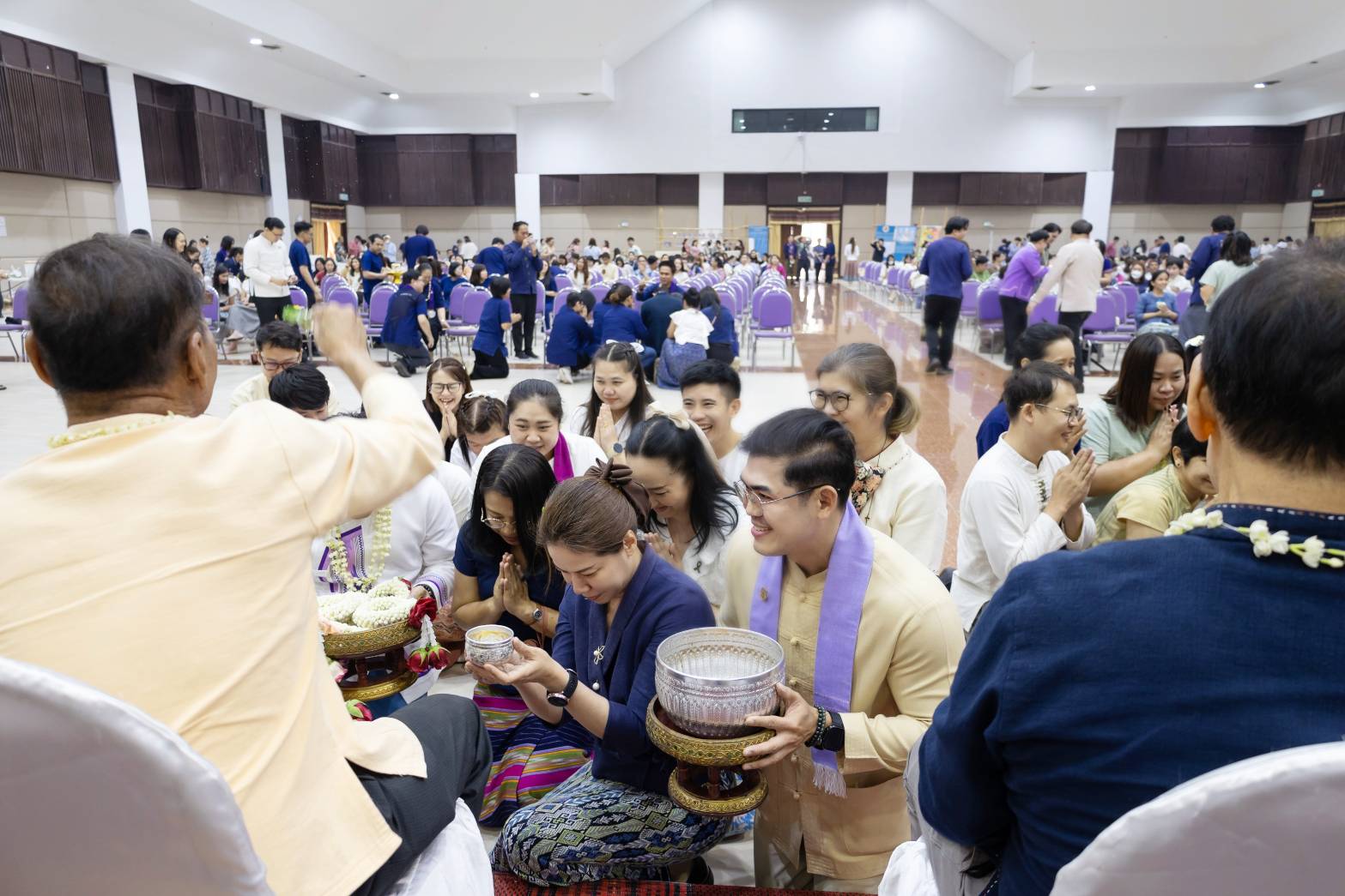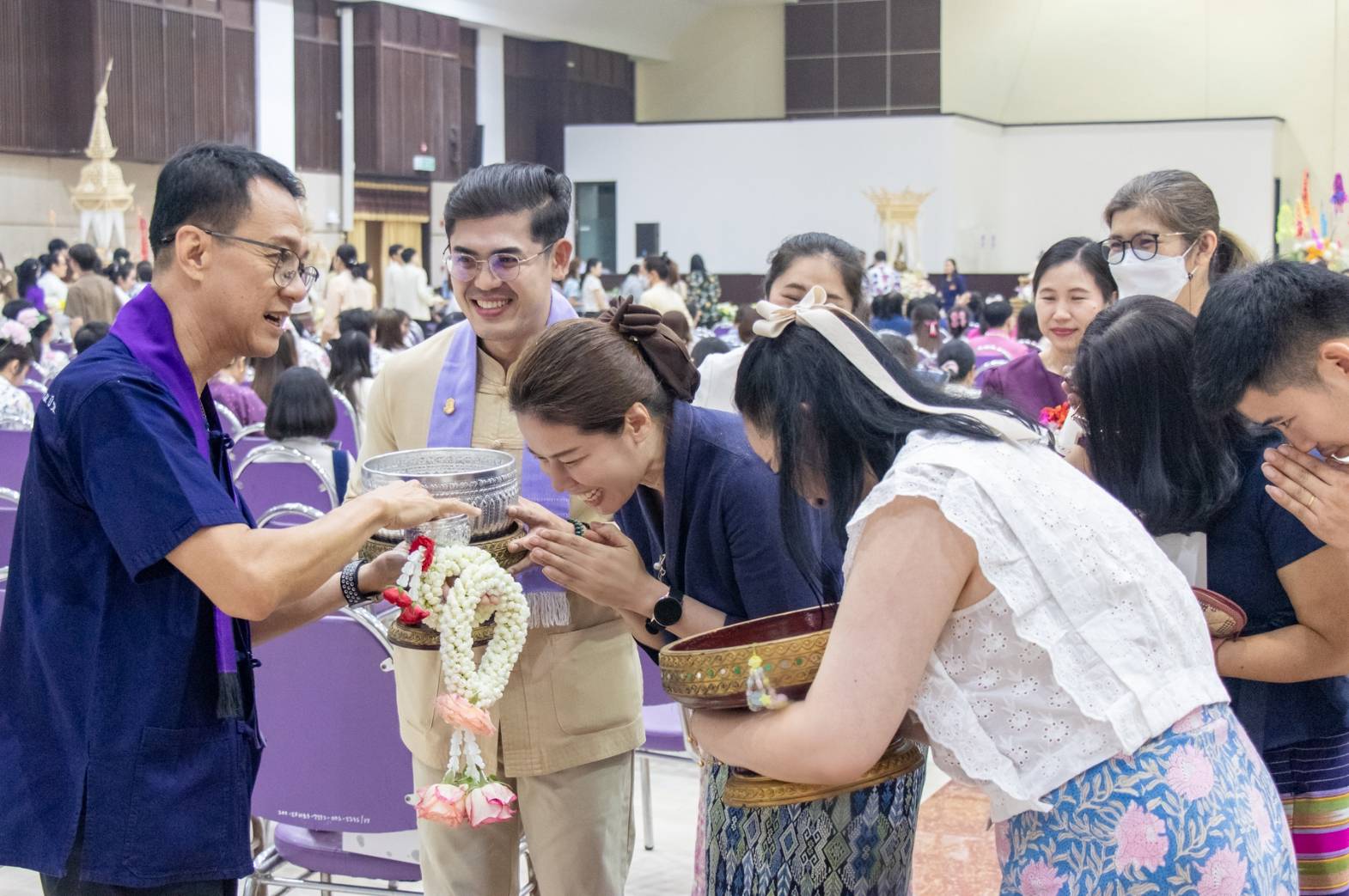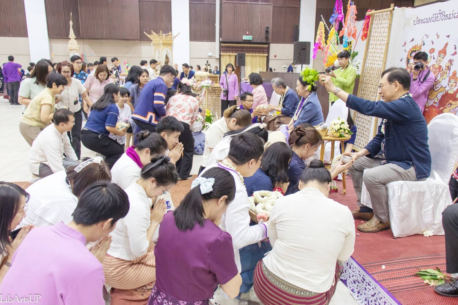 วันจันทร์ที่ ๒๐ เมษายน ๒๕๖๙ คณะศิลปศาสตร์ เข้าร่วมโครงการประเพณีปี๋ใหม่เมือง มหาวิทยาลัยพะเยา ประจำปี ๒๕๖๙ นำโดย ผู้ช่วยศาสตราจารย์ ดร.จิตติมา กาวีระ คณบดีคณะศิลปศาสตร์ พร้อมด้วยคณะผู้บริหารและบุคลากรสายสนับสนุน ได้เข้าร่วมพิธีสระเกล้าดำหัวอธิการบดี และคณาจารย์ผู้อาวุโส เนื่องในประเพณีสงกรานต์มหาวิทยาลัยพะเยา ประจำปี ๒๕๖๙ ณ หอประชุมพญางำเมือง มหาวิทยาลัยพะเยา โดยได้รับเกียรติจาก รองศาสตราจารย์ ดร.สุภกร พงศบางโพธิ์ อธิการบดีมหาวิทยาลัยพะเยา เป็นประธาน ทั้งนี้ คณะผู้บริหารและบุคลากรคณะศิลปศาสตร์ ได้ร่วมกิจกรรม อาทิ การสรงน้ำพระพุทธภุชคารักษ์และพระบรมรูปสมเด็จพระนเรศวรมหาราช จากนั้นร่วมพิธีสระเกล้าดำหัวอธิการบดีและคณาจารย์ผู้อาวุโส พร้อมมอบพวงมาลัยเพื่อขอขมาและขอพรเนื่องในวันปีใหม่เมือง รวมถึงออกร้านแจกอาหารว่างให้แก่บุคลากรมหาวิทยาลัยพะเยาที่เข้าร่วมโครงการ