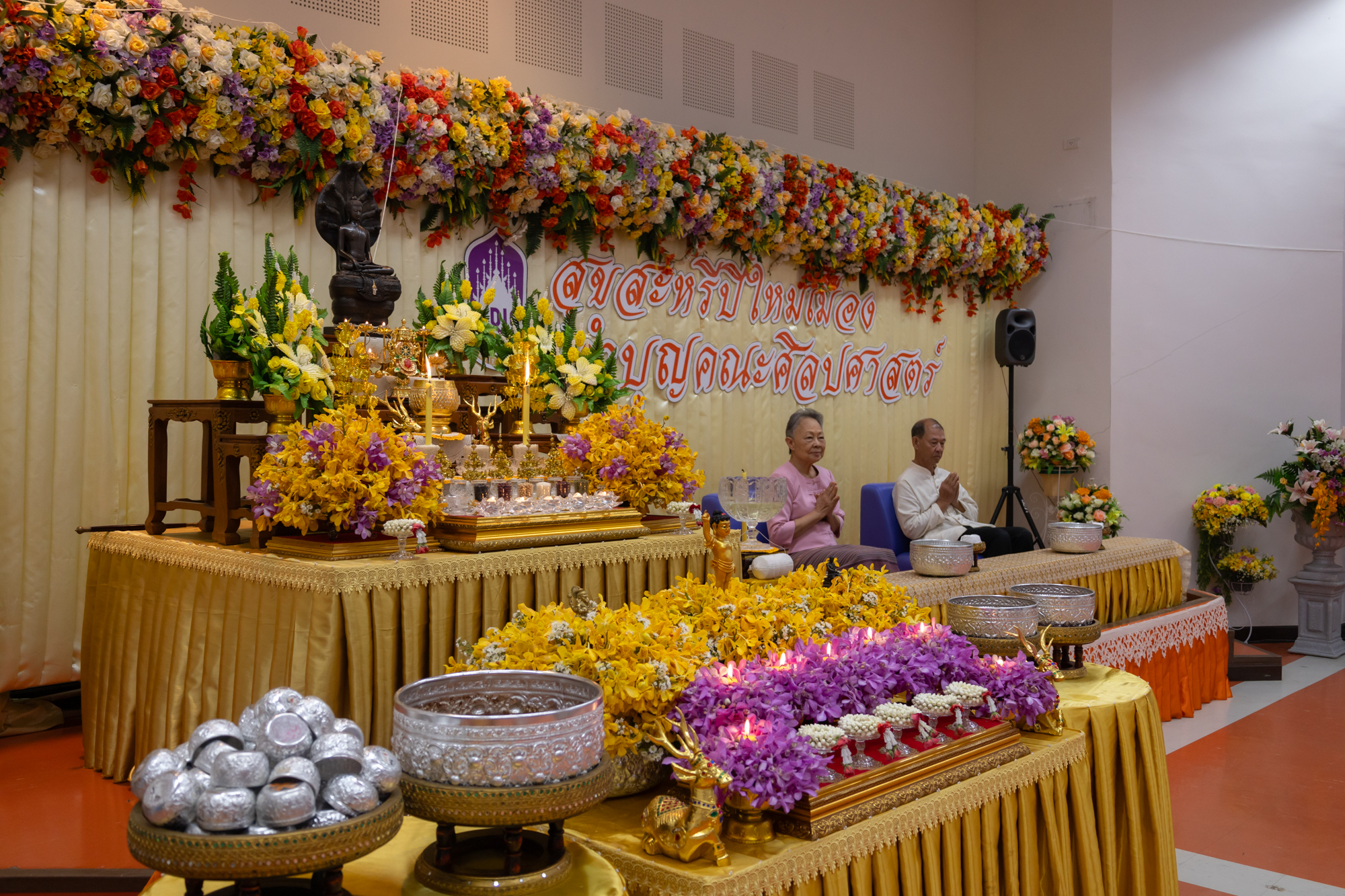 เมื่อวันอังคารที่ ๒๙ เมษายน ๒๕๖๘ คณะศิลปศาสตร์ได้จัดโครงการ สุขสะหรี ปี๋ใหม่เมือง และทำบุญคณะศิลปศาสตร์ ประจำปี ๒๕๖๘ ณ ห้อง CE ๑๔๒๐๖ คณะศิลปศาสตร์ มหาวิทยาลัยพะเยา โดยมี ผู้ช่วยศาสตราจารย์ ดร.จิตติมา กาวีระ คณบดี ประธานในพิธี พร้อมด้วยคณะผู้บริหาร คณาจารย์ และบุคลากรสายสนับสนุน เข้าร่วมกิจกรรม ซึ่งประกอบด้วย การทำบุญตักบาตร ข้าวสาร อาหารแห้ง โดยได้นิมนต์พระสงฆ์ ๕ รูป สวดมนต์ไหว้พระ เจริญพระพุทธมนต์ และสวดบทสวดธรรมจักรกัปปวัตนสูตร ถวายเครื่องไทยทานและข้าวสารอาหารแห้ง พร้อมรับประพรมน้ำมนต์จากพระสงฆ์ และมีพิธีสรงน้ำพระพุทธเจ้าน้อย พระพิฆเนศ และ สมเด็จพระนเรศวรมหาราช เพื่อความเป็นสิริมงคล จากนั้นบุคลากรคณะศิลปศาสตร์ ได้ร่วมใจกันรดน้ำดำหัว ขอขมา รองศาสตราจารย์พูนพงษ์ งามเกษม ผู้ทรงคุณวุฒิคณะศิลปศาสตร์ และ ดร.บรรจง ไชยรินคำ อาจารย์อาวุโสของคณะศิลปศาสตร์ พร้อมรับพรเนื่องในวันปี๋ใหม่เมือง ๒๕๖๘
