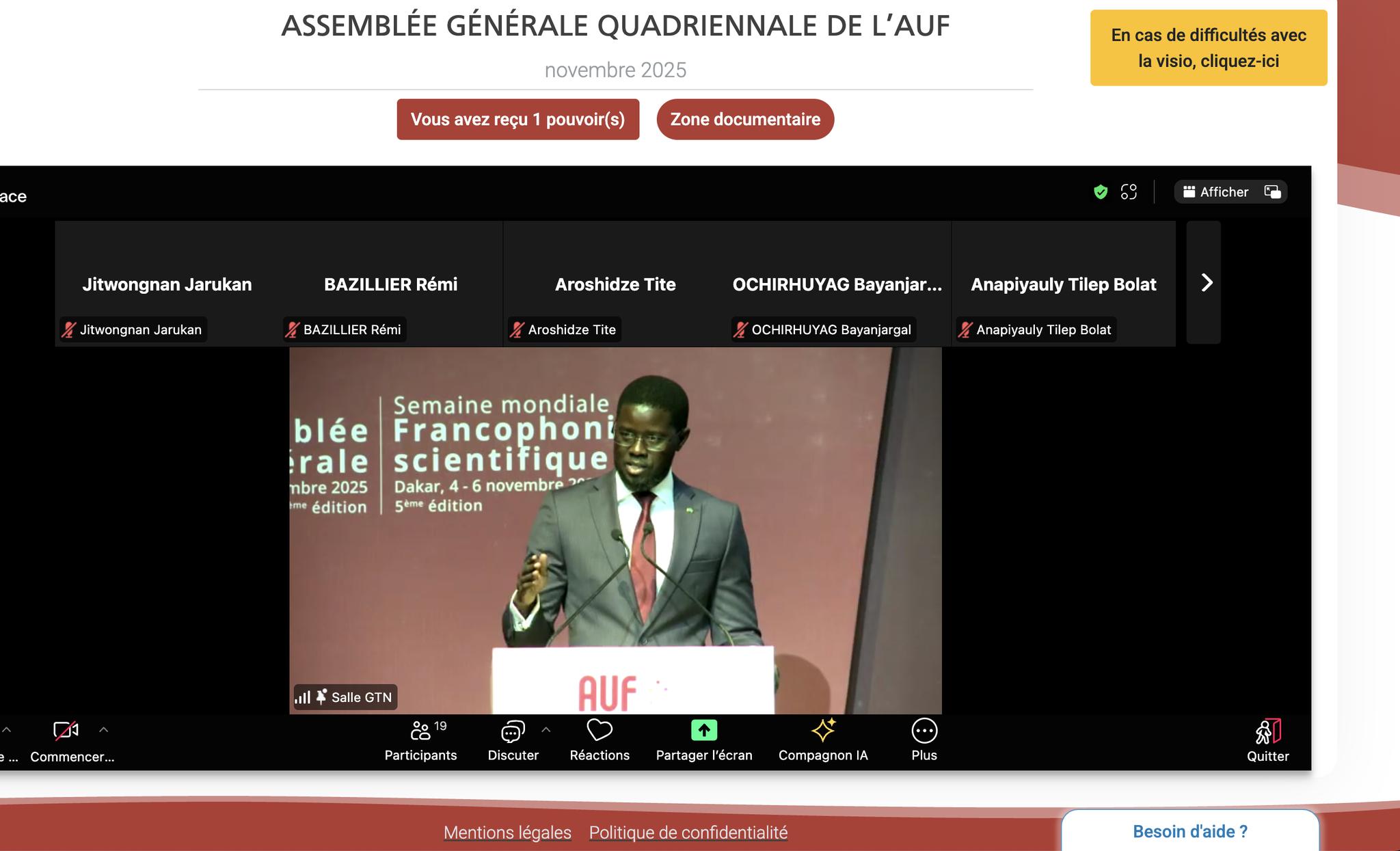 คณบดีคณะศิลปศาสตร์ มหาวิทยาลัยพะเยา ผู้ช่วยศาสตราจารย์ ดร.จิตติมา กาวีระ มอบหมายให้ ประธานหลักสูตร ศศ.บ.ภาษาฝรั่งเศส ดร.จารุกัญญ์ เงวียน จิตรวงศ์นันท์ เข้าร่วมการประชุมสามัญรอบ 4 ปี ขององค์กรความร่วมมือระหว่างมหาวิทยาลัยผู้พูดภาษาฝรั่งเศส (Assemblée Générale Quadriennale de l'Agence Universitaire de la Francophonie) ซึ่งจัดขึ้น ณ เมือง Dakar ประเทศเซเนกัล ในระหว่างวันที่ 3-5 พฤศจิกายน 2568 ผ่านช่องทางออนไลน์ ในฐานะที่คณะศิลปศาสตร์ มหาวิทยาลัยพะเยา เป็นสมาชิกสมทบของ Agence Universitaire de la Francophonie (AUF)
